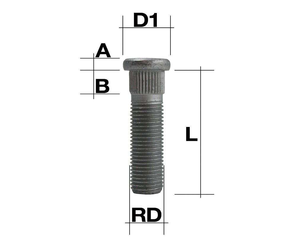 Hoch Qualitäts Radbolzen Stehbolzen / Rändelbolzen M14x1,5 60mm lang mit bestem Rostschutz.
