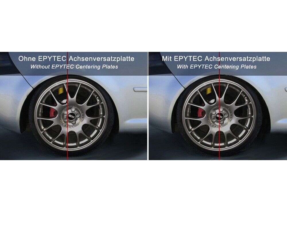 Achsversatzplatten für die Hinterachse bei tiefer gelegten Fahrzeugen. Durch das Tieferlegen des Fahrzeuges kommt die Achse aus der Mitte des Radkastens, somit kann es sein, dass das Rad am Radkasten streift und eine schlechte Optik und Spurtreue bietet.