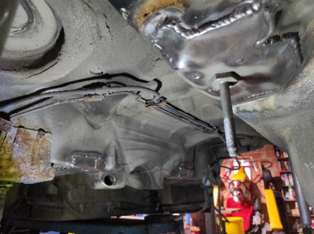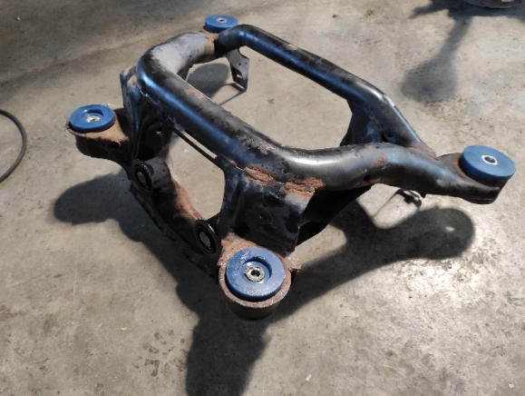 - 2 Muttern und 2 Schrauben vom Hinterachsträger lösen und ausbauen - Tank ausbauen (nicht zwingend, erleichtert aber Arbeit und ist beim Schweißen sicherer)