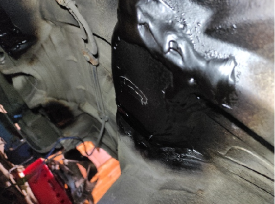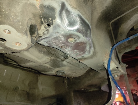 Karosseriedichtmasse abdichten und mit Unterbodenschutz übersprühen. Dabei darauf