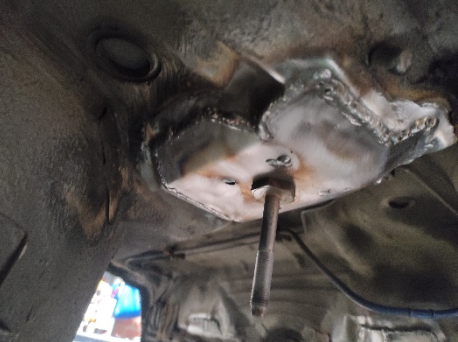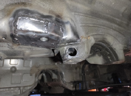 der Achse auch von innen an der Karosserie nachgeschweißt werden soll. Dazu sind von innen 2