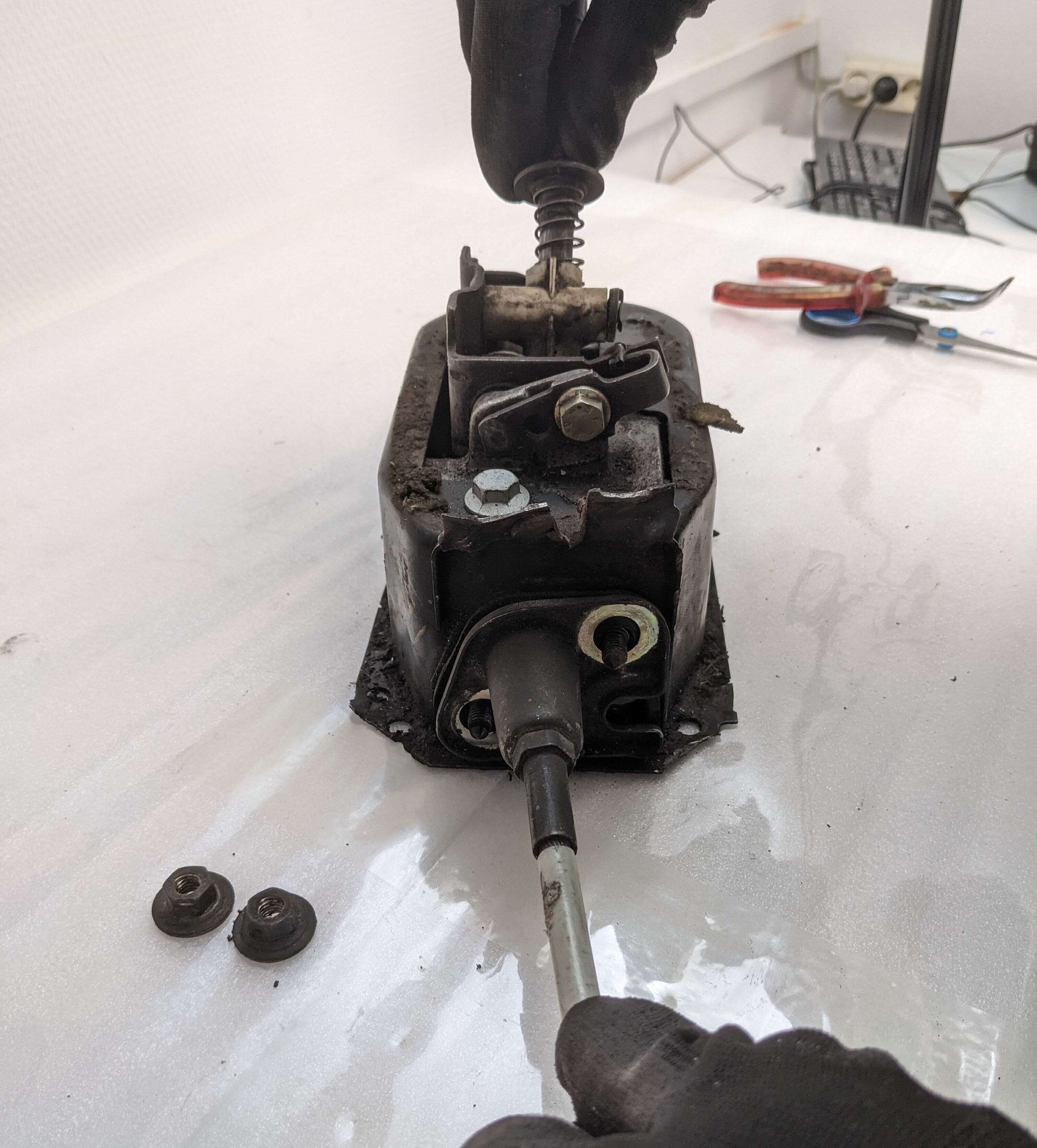 Anschließend wird der Schalthebel am besten in die kürzeste Position gestellt, damit der Seilzug nicht unter Zug ist.