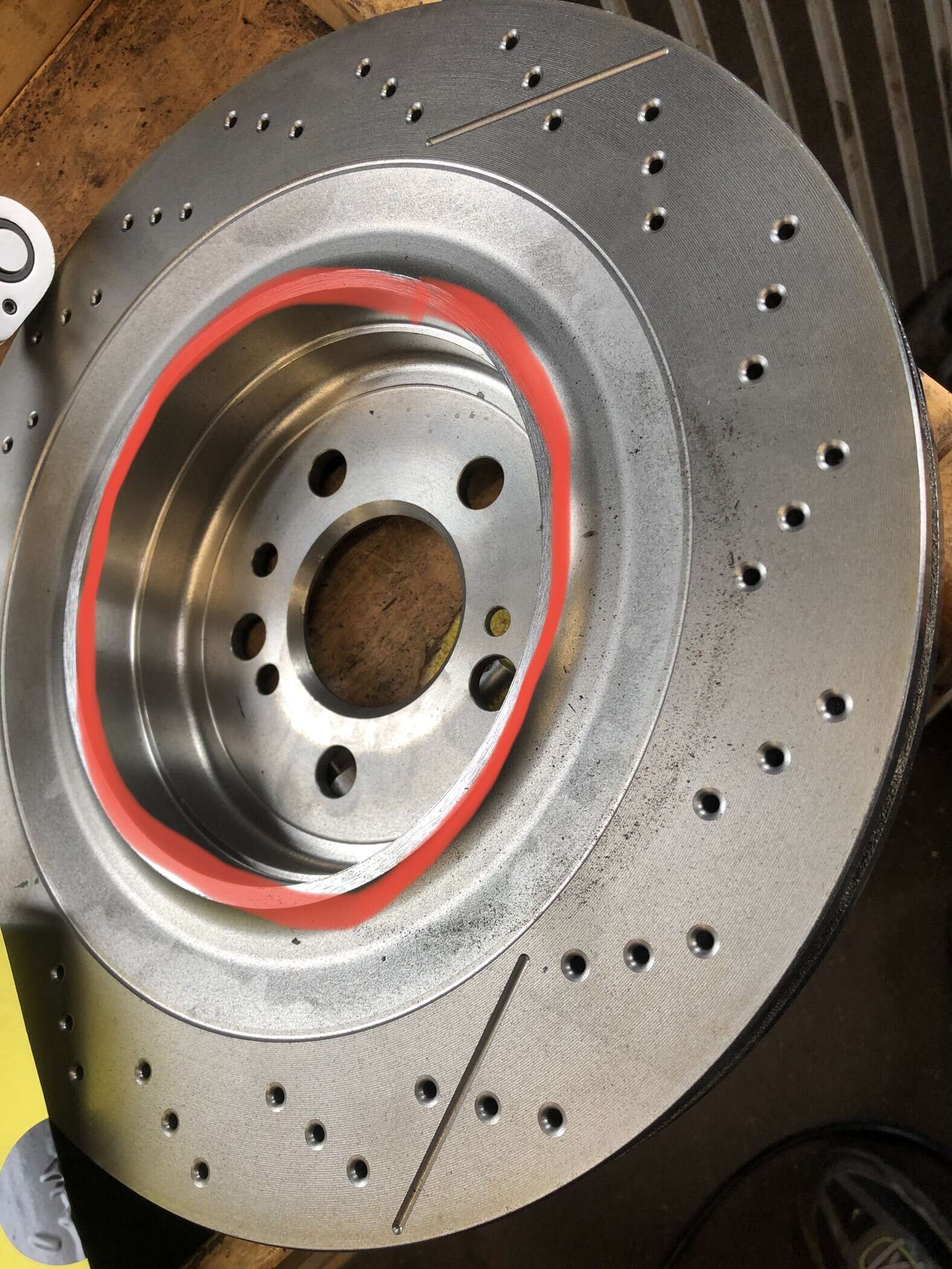 Das muss gemacht werden, damit die neue 360x28mm Bremsscheibe vom Mercedes Benz GL (09.A907.11), welche vom Innendurchmesser etwas kleiner ist als die originale Bremsscheibe, sauber montiert werden kann und nirgendwo ansteht oder schleift.