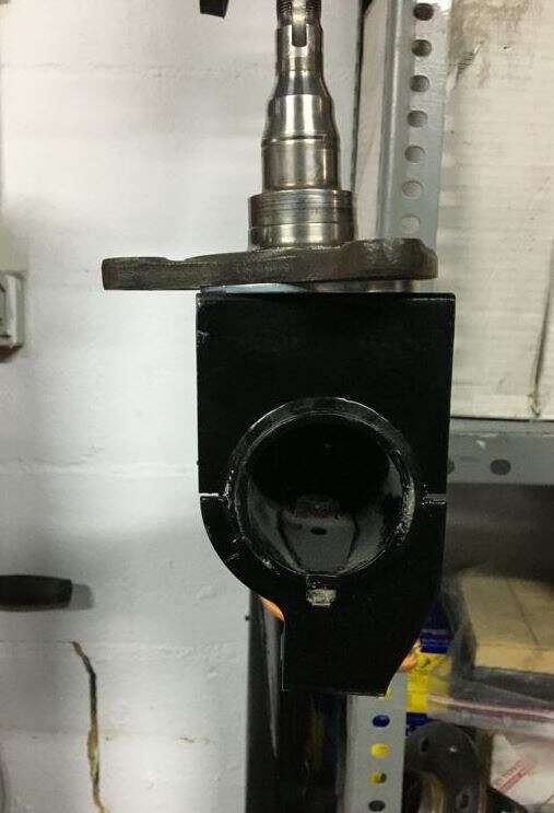 Hier siehst du einmal die original Achse des VW Golf 2 und VW Golf 3. Die Sturzkorrekturplatte (hier klicken) und der Achszapfen (hier klicken) wurden einmal auf darauf gelegt, damit man sehen kann, was für eine Veränderung im Sturz stattfindet.