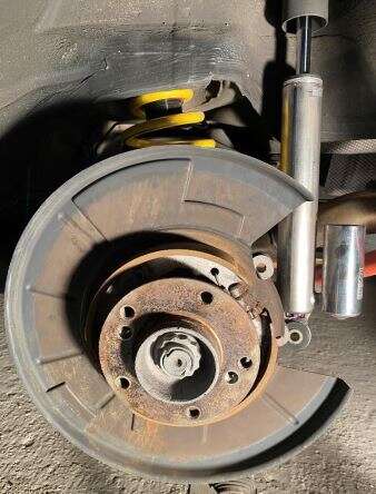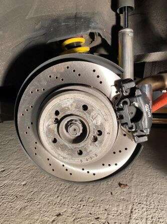 Somit ist der Umbau mit den Porsche 986 Bremssättel und passender E46 M3 328x20mm Bremsscheibe nahezu abgeschlossen.