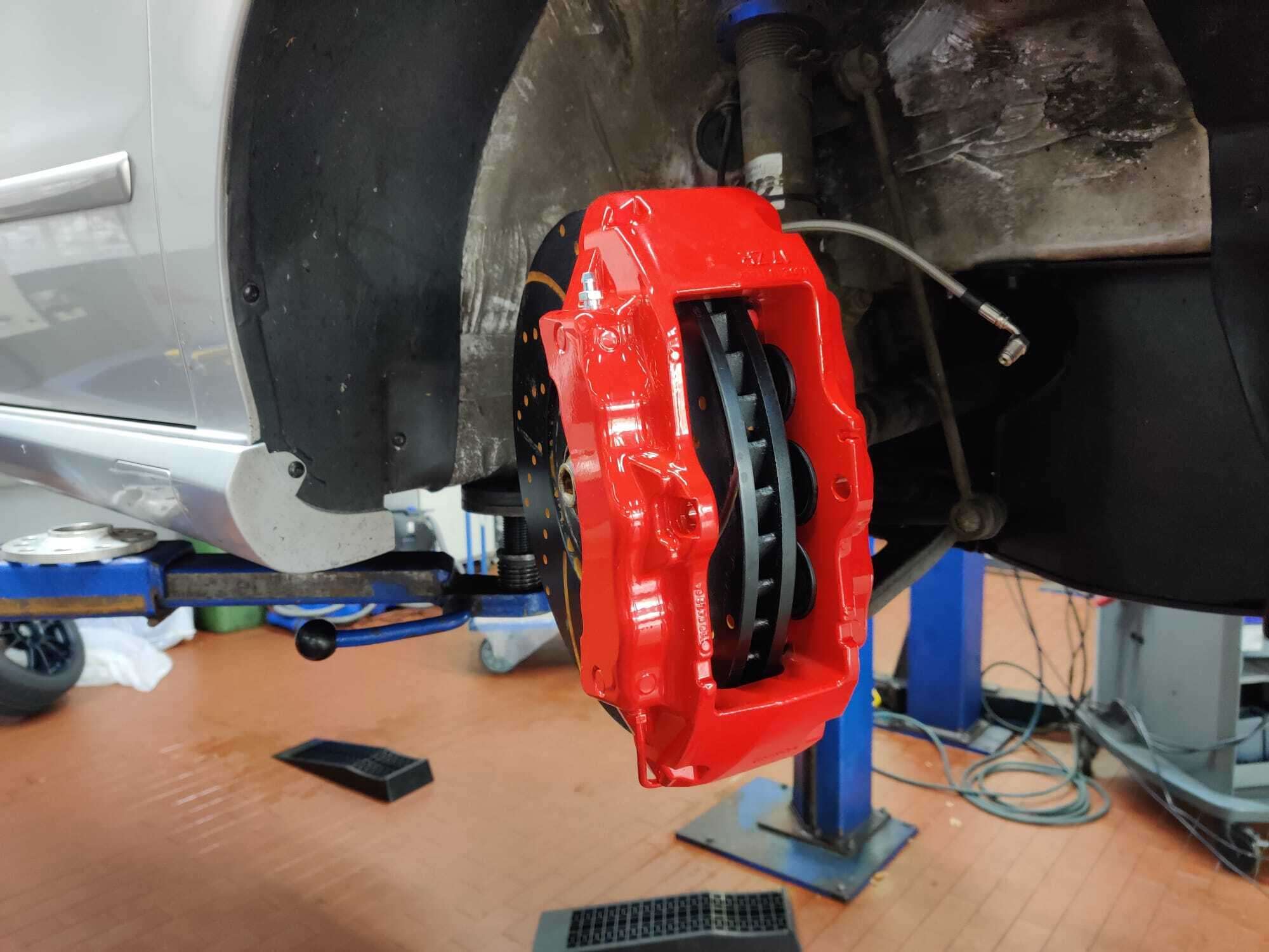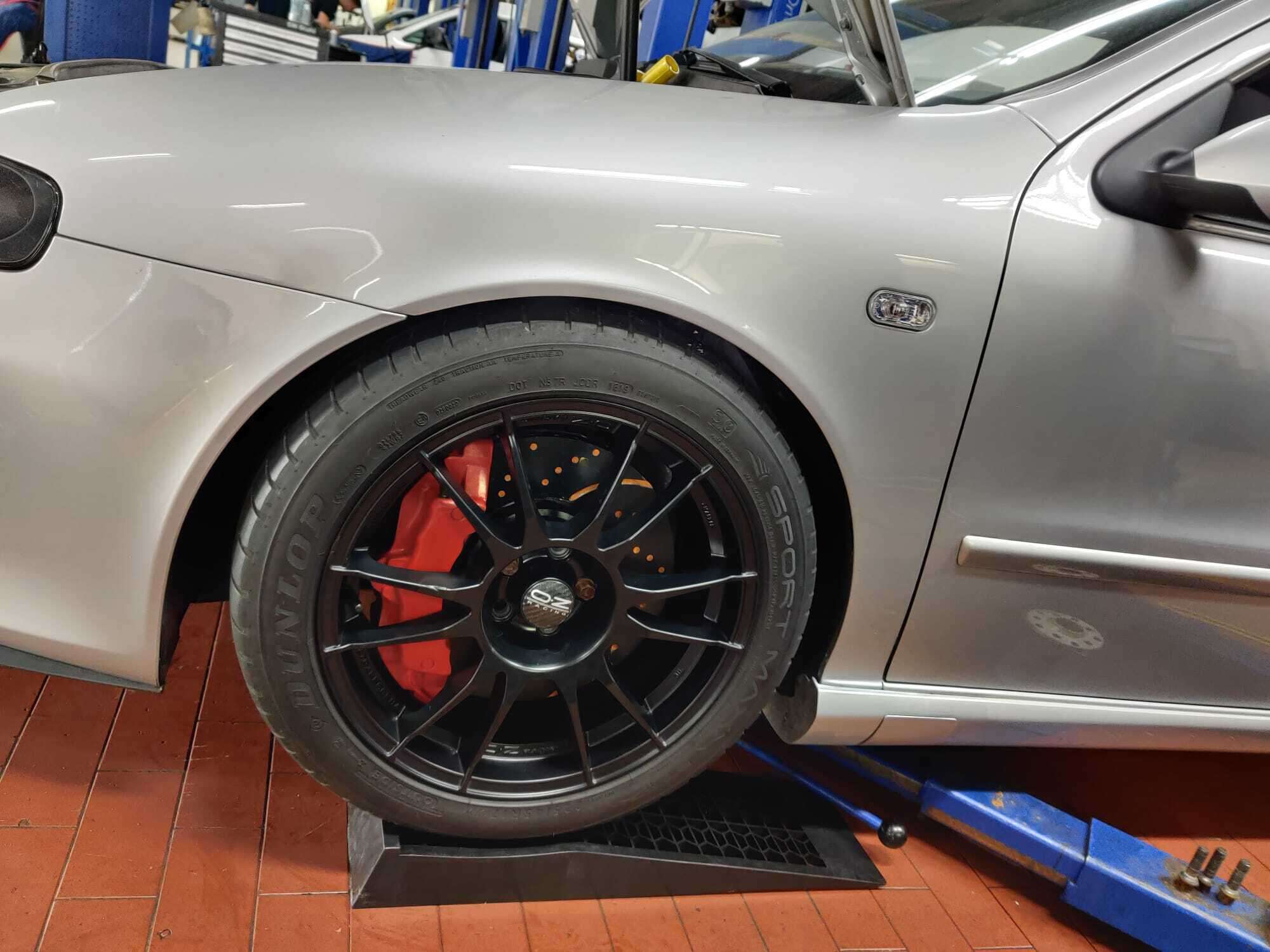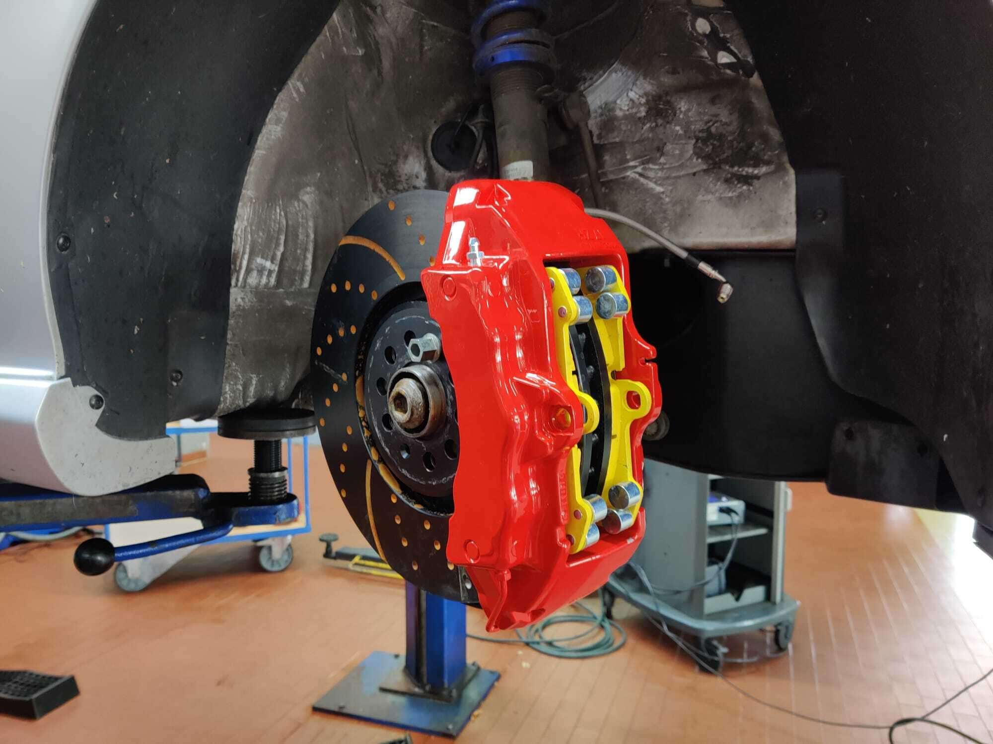 Somit ist der Umbau mit den ZR17 6-Kolben Bremssättel und passender VW Golf R32 334x32mm Bremsscheibe nahezu abgeschlossen.