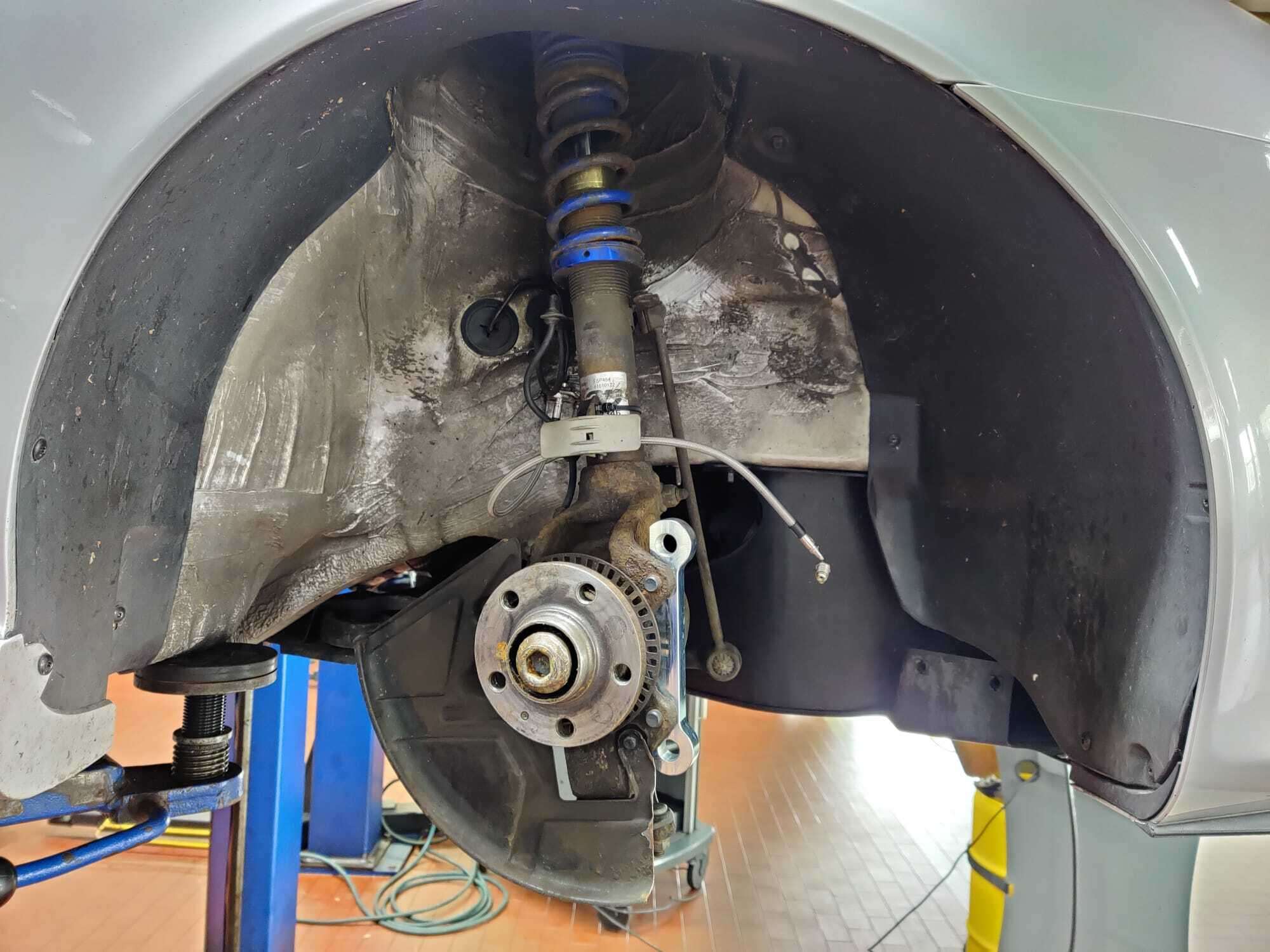 Nun wird geprüft ob alles freigängig läuft und nirgendwo etwas streift. Das Ganze muss auch geprüft werden, wenn du einmal komplett nach links und rechts einschlägst, um zu prüfen, ob etwas im Weg ist, wie z.B. Traggelenk, Querlenker etc.