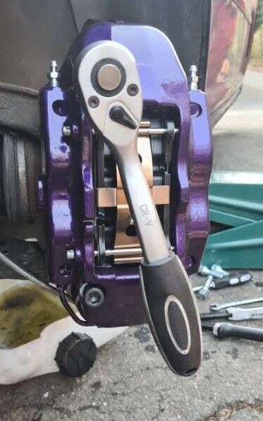 Danach wird die alte Bremse komplett demontiert und die Radnabe gereinigt werden. Tipp, unterlege am besten einen kleinen Behälter, damit die Bremsflüssigkeit aufgefangen wird.