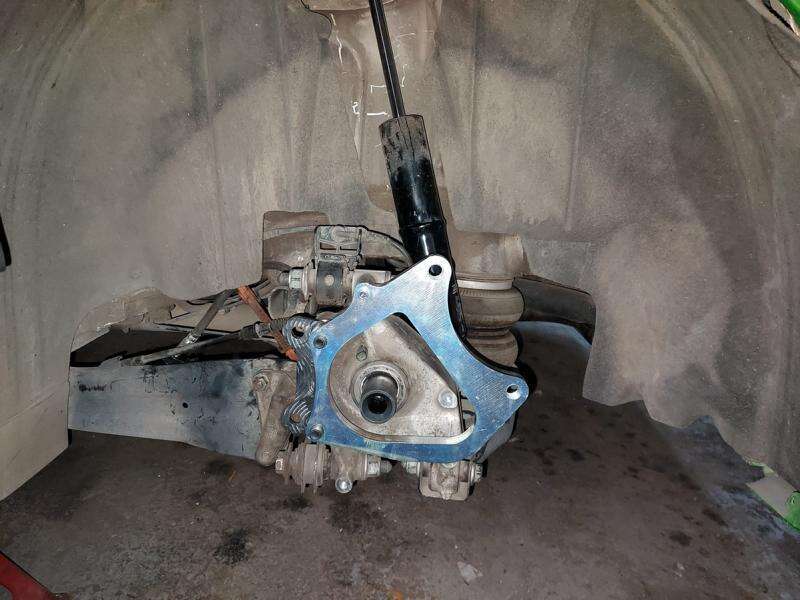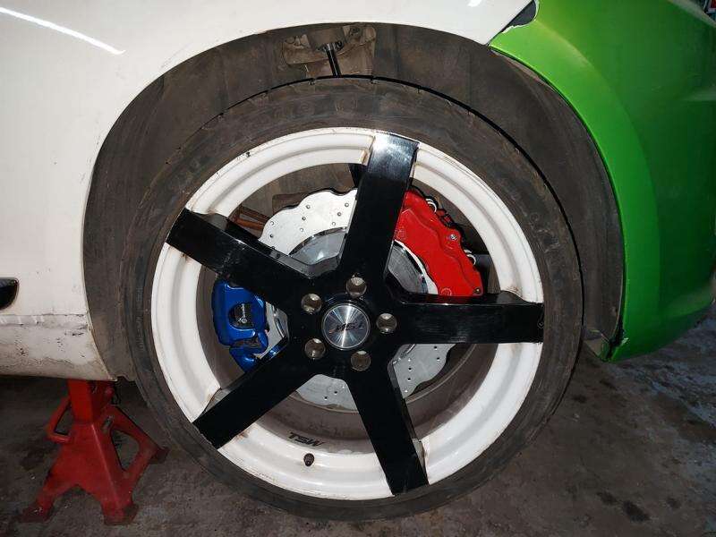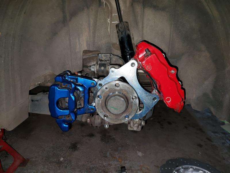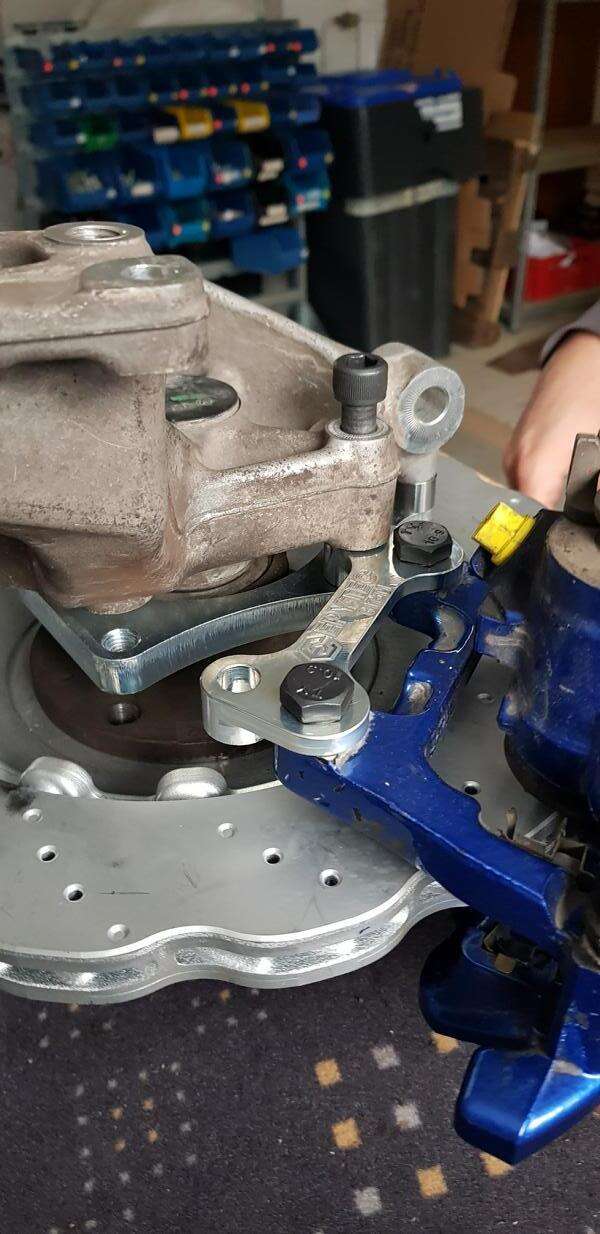 Somit ist der Umbau mit den Porsche Cayenne Bremssätteln und der VW Golf 4 R32 Handbremsanlage und passender Audi RS7 356x22mm Bremsscheibe nahezu abgeschlossen.