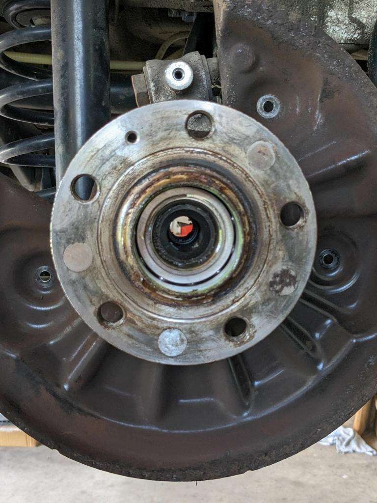 Zuerst die Radnabe wieder aufschieben, Schraube befestigen, und die Fettkappe der Radnabe wieder leicht aufstecken ggf. festkleben wenn diese zu locker sitzen sollte.