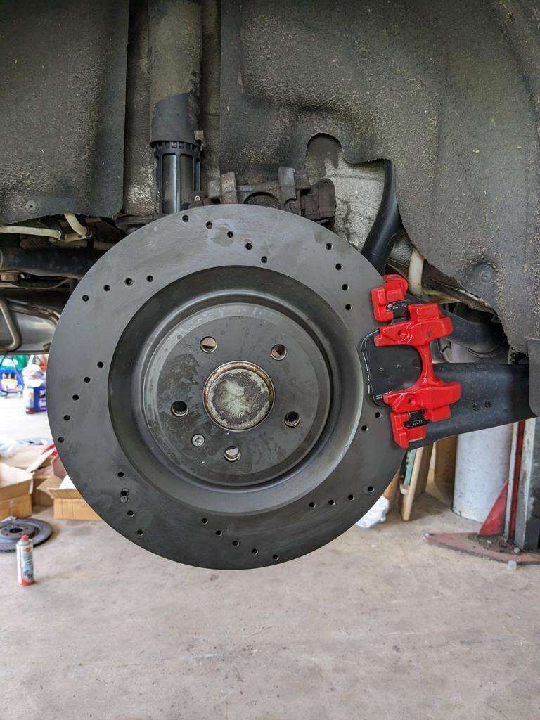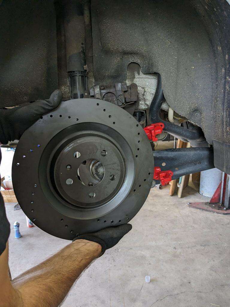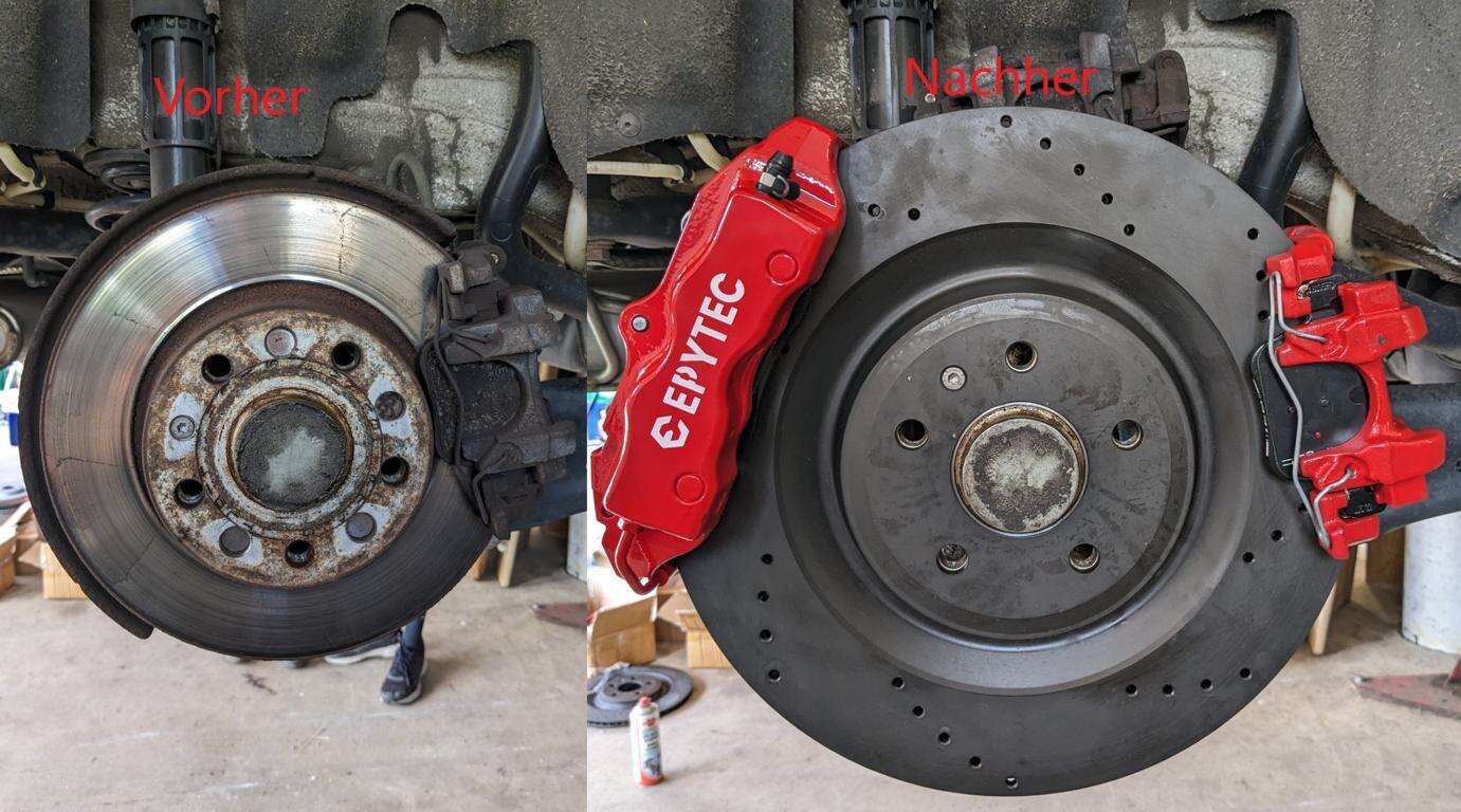 Sobald der Bremssattel auf der neuen Bremsscheibe montiert worden ist, kannst du die Bremsscheibe auf Freigängigkeit und Lenkeinschlag prüfen und ob bei vollem Lenkeinschlag nichts streift. Dafür am besten einmal komplett nach links und rechts einschlagen, um zu prüfen, ob etwas im Weg ist, wie z.B. Traggelenk, Querlenker etc.