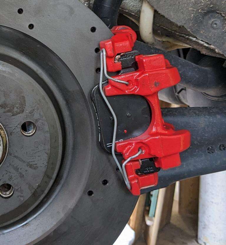 Zum Schluss noch die Halteklammer am Handbremssattel montieren, damit die Bremsbeläge nicht zu "flattern" beginnen können.