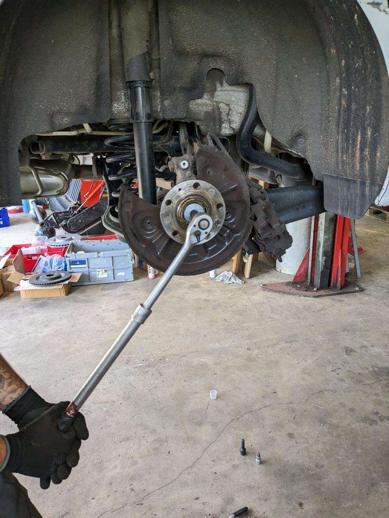 Zur Demontage der alten Bremsanlage muss das Auto aufgebockt werden oder du hast im besten Fall eine Hebebühne zur Verfügung.