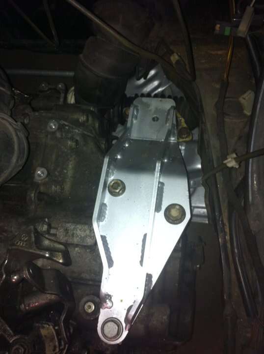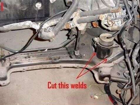 Der mitgelieferte kleine Getriebehalter für das 02M Getriebe muss an die original Getriebehalterung des VW Golf 2 3 etc. geschweißt werden.