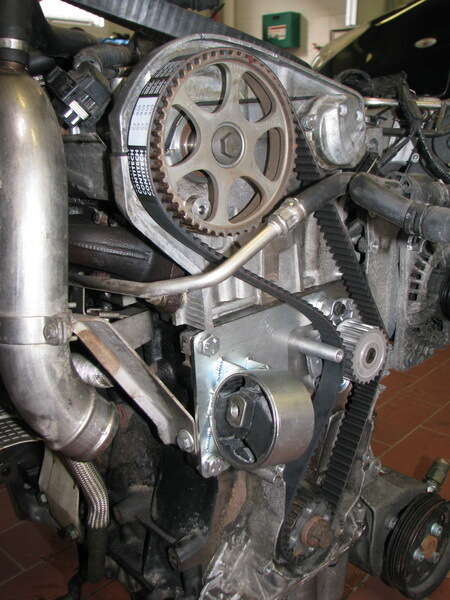 Wenn der Motor auf den OT gedreht worden ist, kann im Anschluss der Keilriemen demontiert werden.