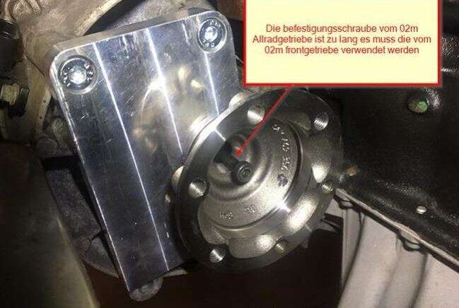 Es darf nicht die Schraube 02M 4WD verwendet um den Flansch zu befestigen, da diese zu lange sind. Zum Befestigen im Getriebe muss die Schraube vom 02m 2WD z.B. verbaut im TDI verwendet werden.