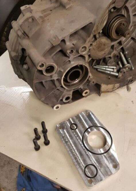 Mit diesem Epytec Tuning Adapter kann man ganz einfach das normal für Allrad gedachte 6-Gang 02M 02Q Getriebe auf Frontantrieb umrüsten. Der Epytec Tuning Adapter wird nicht nur benötigt um den Wellenflansch zu montieren, sondern ist auch wichtig, um die Ölleitung, die für den Winkeltrieb normal offen ist abgedichtet wird.