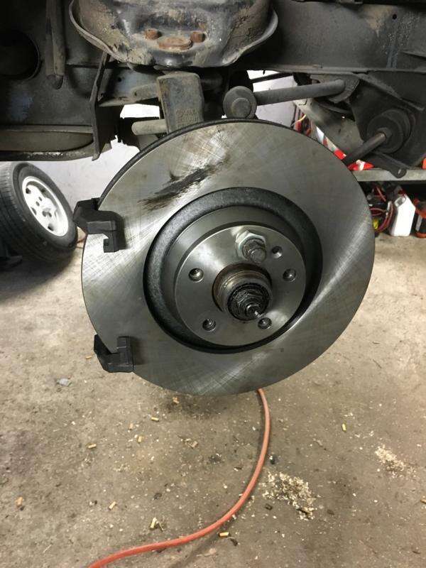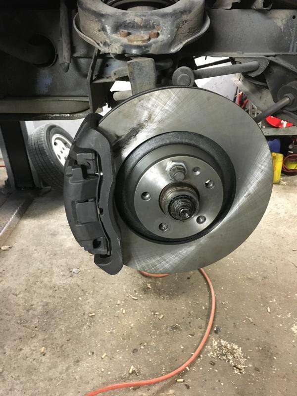 Zuletzt muss die Freigängigkeit der neuen Bremsanlage kontrolliert werden. Hierzu das Fahrzeug komplett nach links und rechts voll einschlagen und prüfen, dass nirgendwo etwas schleift, bzw. dass man nirgendwo ansteht wie z.B. am Traggelenk, Querlenker etc.