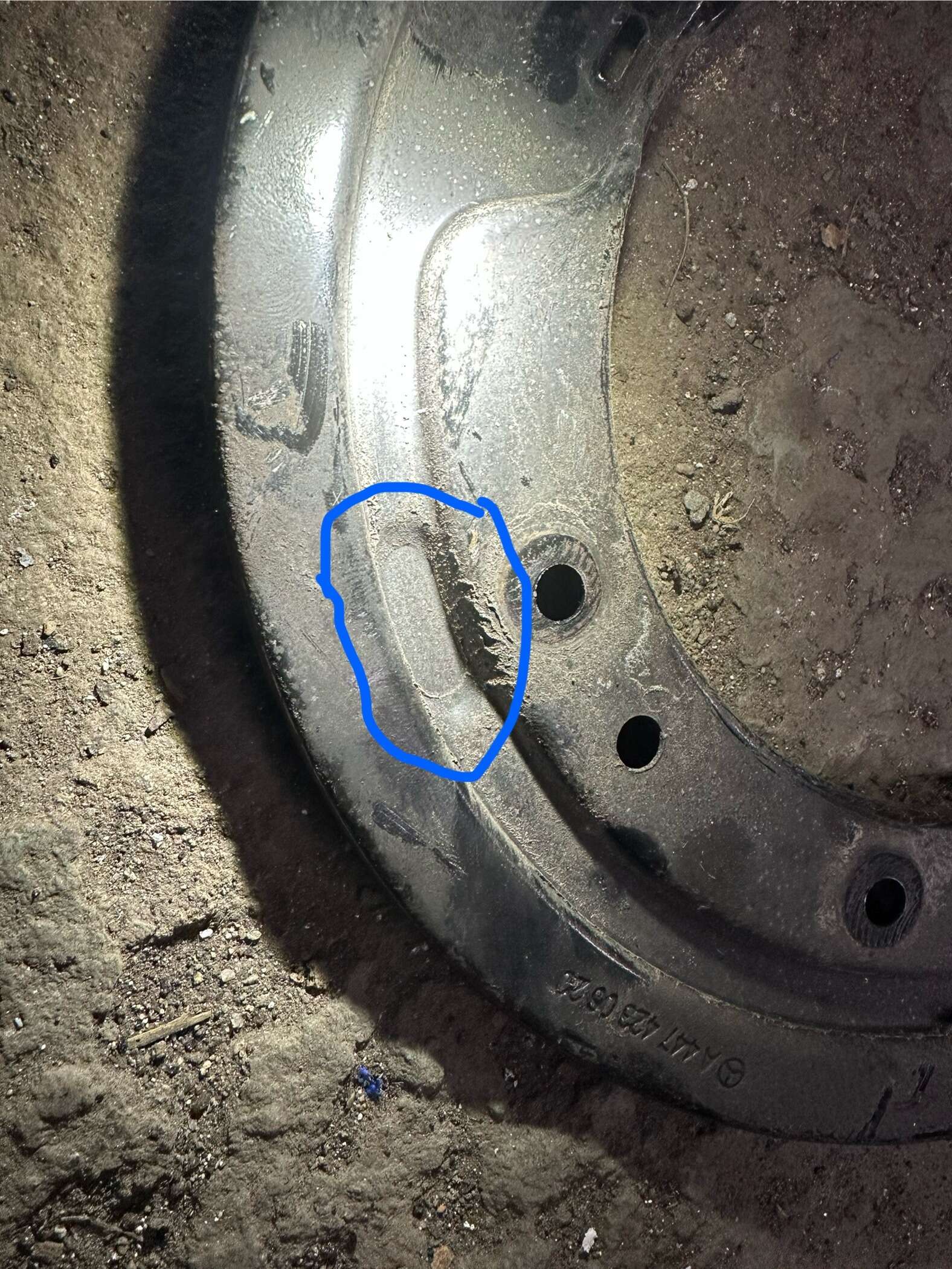 Um eine planaufliegende und spannungsfreie Montage zu gewährleisten, mussten diese Bereiche – wie auf dem Bild blau eingekreist – fachgerecht mit einem Schonhammer platt geklopft werden. Hierbei empfiehlt es sich, das Ankerblech zunächst probeweise aufzulegen und die Kontaktflächen mit einem Filzstift zu markieren. Anschließend kann die Verformung vorsichtig auf einem Schraubstock oder einer ebenen Metallplatte erfolgen. Achtung: Nur mit kontrolliertem Hammerschlag arbeiten, um das Blech nicht zu stark zu verformen oder zu brechen.