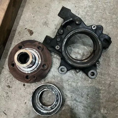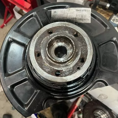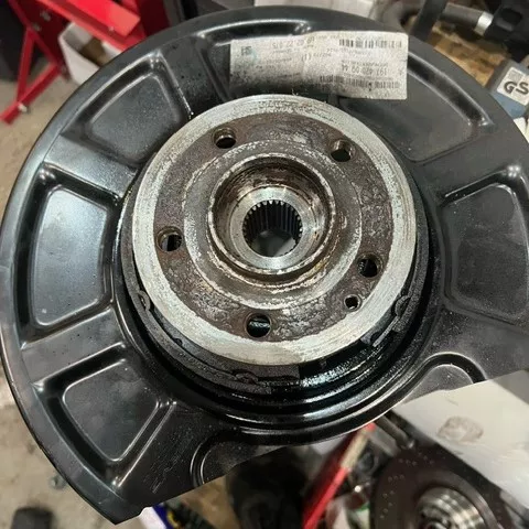 Unbedingt prüfen, dass keine Rost- oder Lackreste an den Anschraubpunkte des Achsschenkels oder Radnabe sind. Sollte das der Fall sein, diese bitte säubern. Danach die Gewinde des Achsschenkels auf Beschädigungen prüfen.
