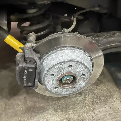 Durch diese Maßnahme verschiebt sich die Position der Handbremsbacken leicht weiter zur Fahrzeugmitte, was bei Modellen mit elektronischer Feststellbremse zu einer Abweichung der Sollposition führt. Aus diesem Grund war im Anschluss eine erneute Kalibrierung der elektrischen Handbremse über das Mercedes-Diagnosesystem erforderlich, um die korrekte Funktion und gleichmäßige Bremskraftverteilung sicherzustellen.
