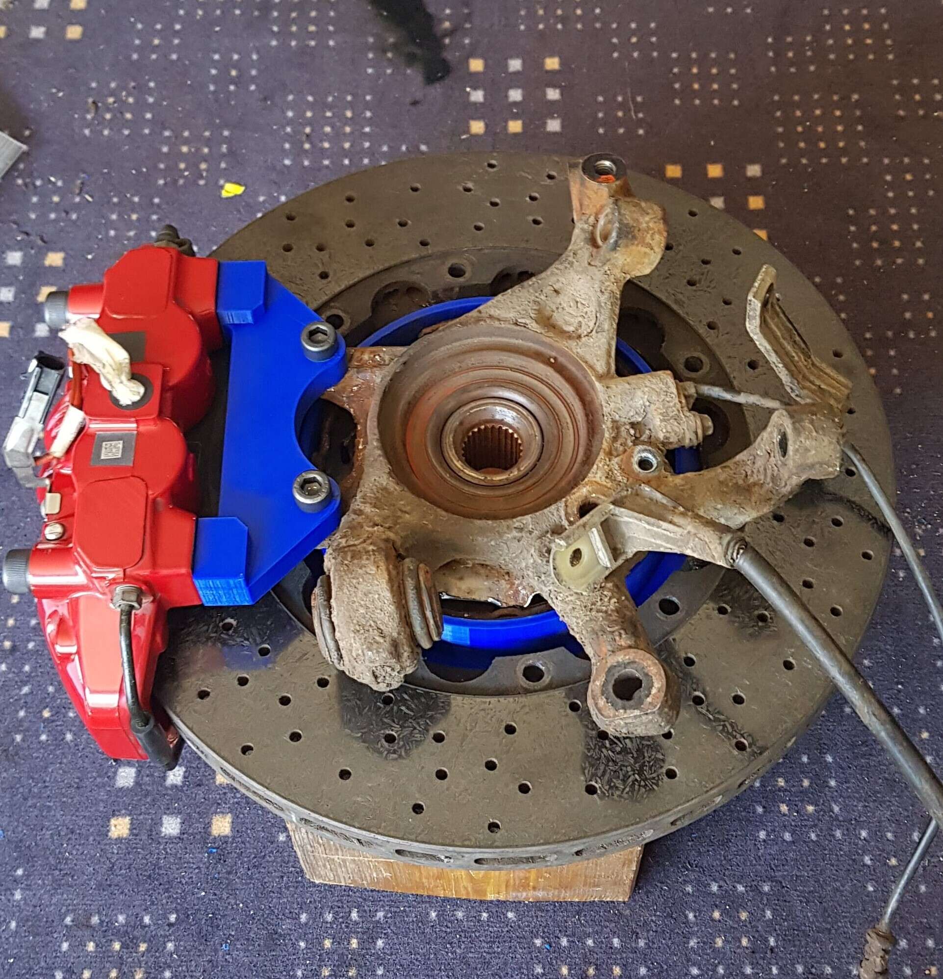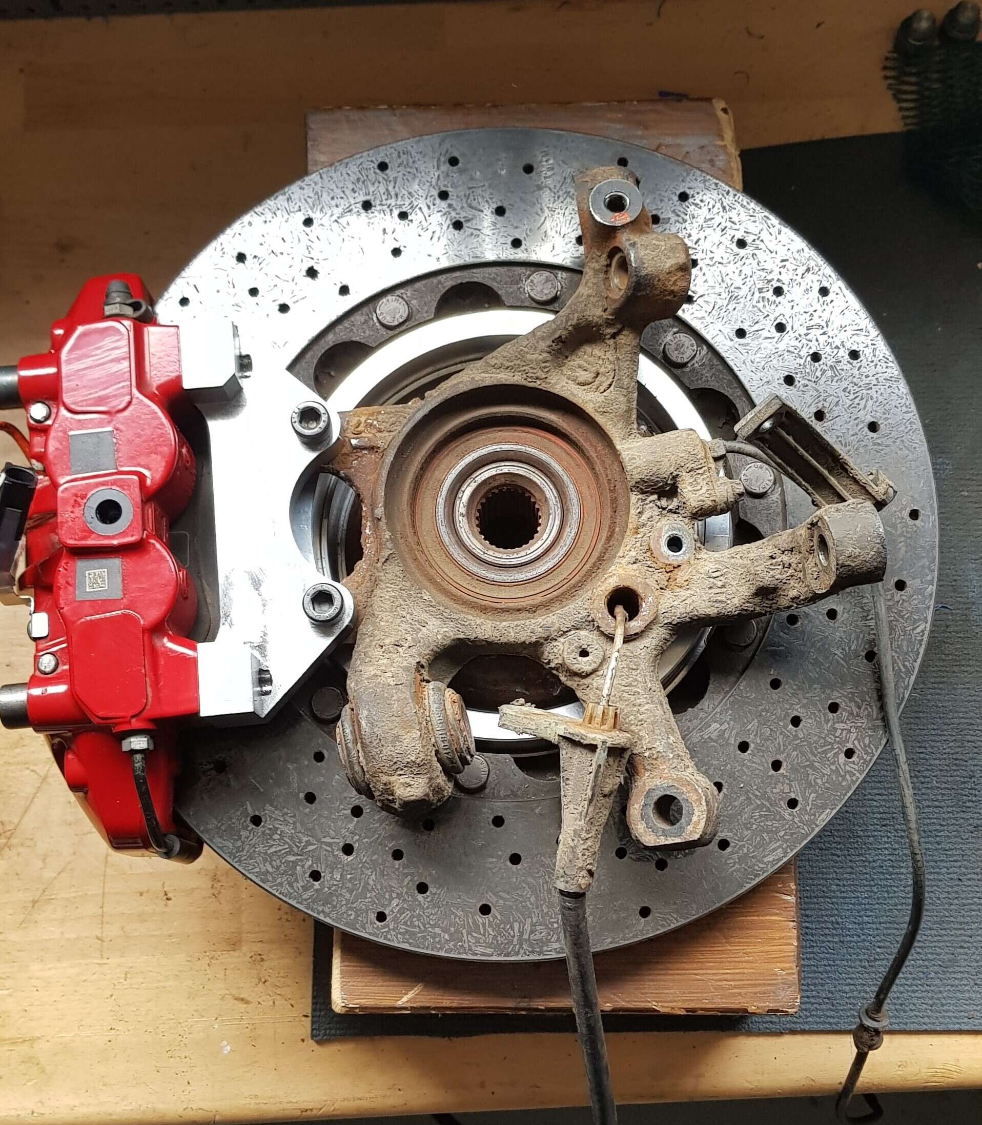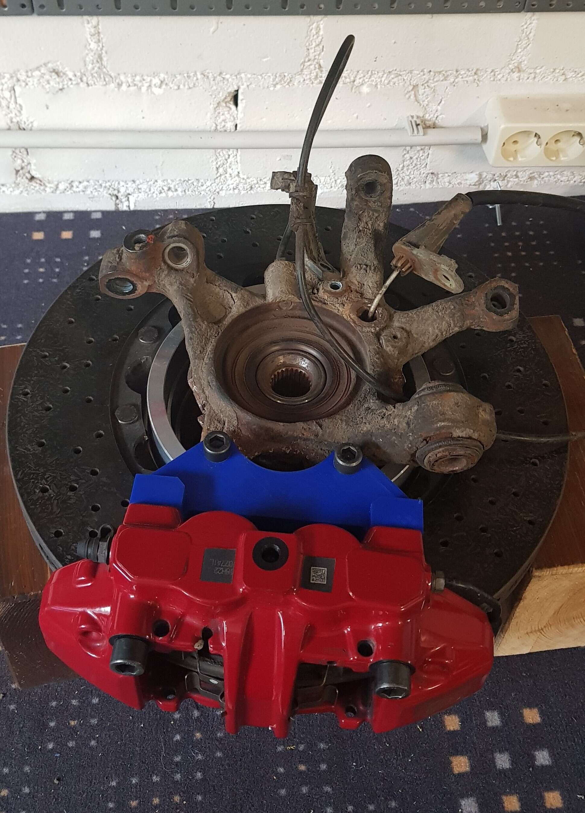 Die Bremssattel Tuning Adapter sind jetzt bei uns vom Oberflächenveredler angekommen und wir konnten alles probemontieren und Paul einen geilen Bremsenumbau für seine Vorder- und Hinterachse ausliefern.