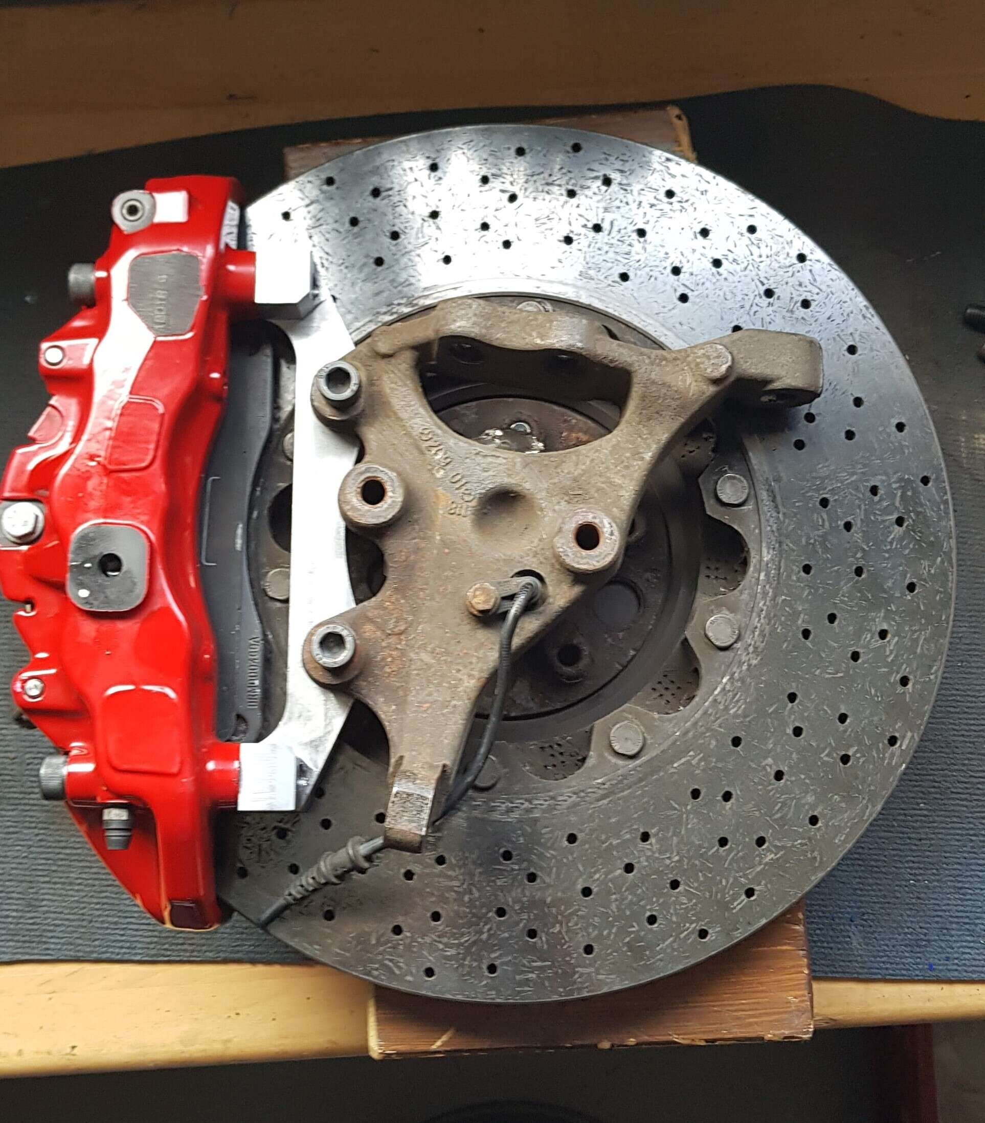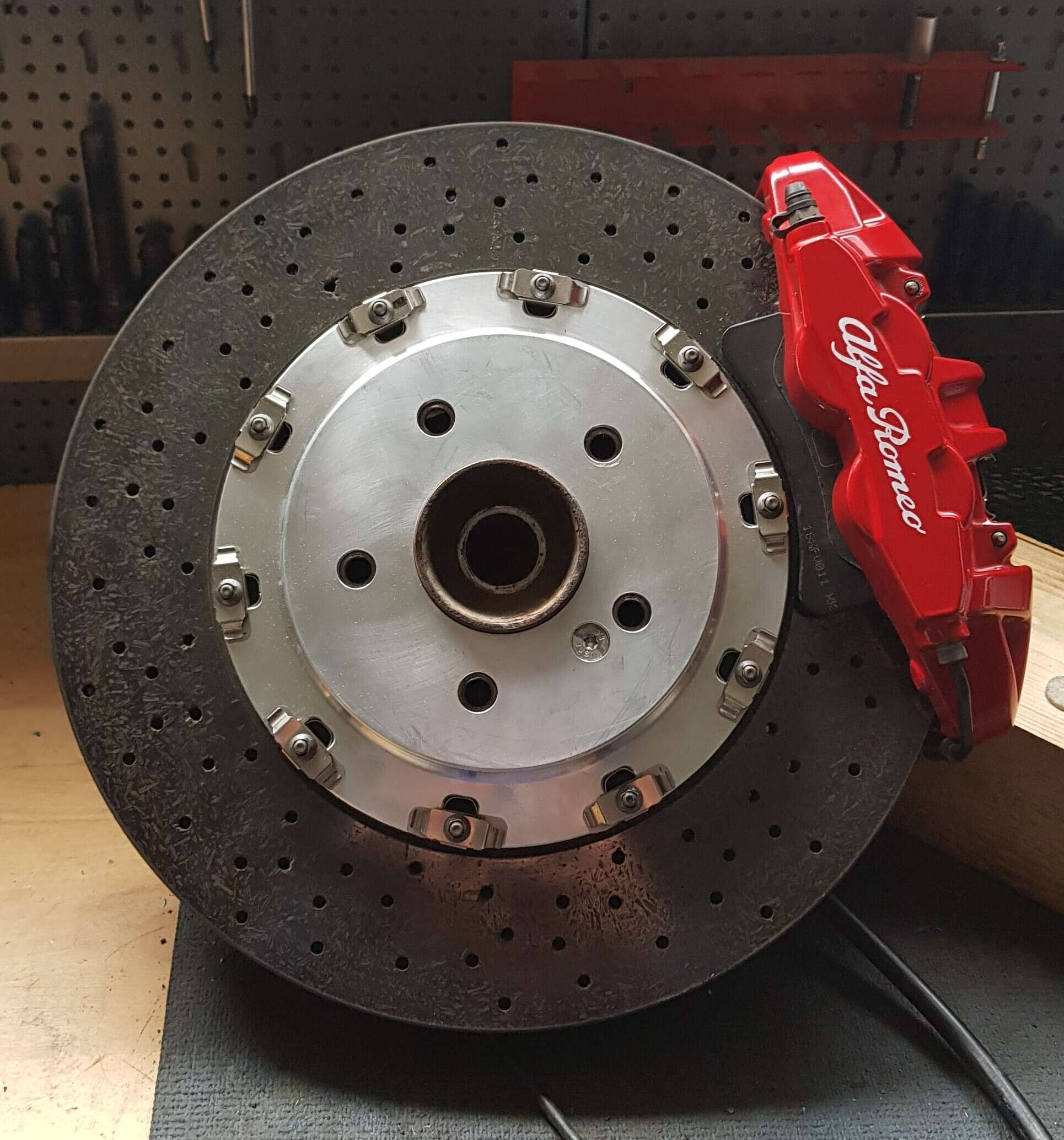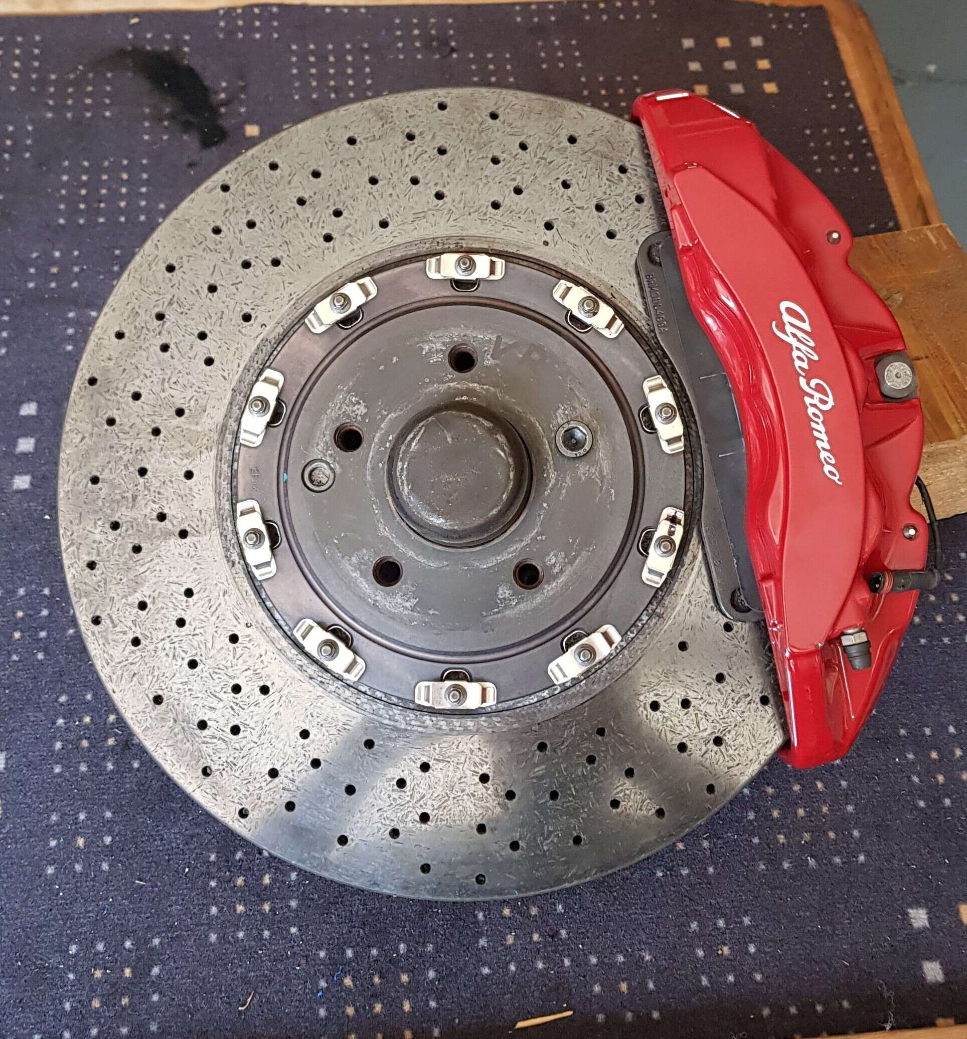 - Unser Kunde Paul hat uns seine Vorder- und Hinterachse inklusiver aller Keramikbremsscheiben und Alfa Romeo Bremssätteln geschickt. Daraufhin haben wir die Komponenten einmal zusammengesteckt um die benötigten Tuning Adapter für seine Bremsanlage zu ermitteln.