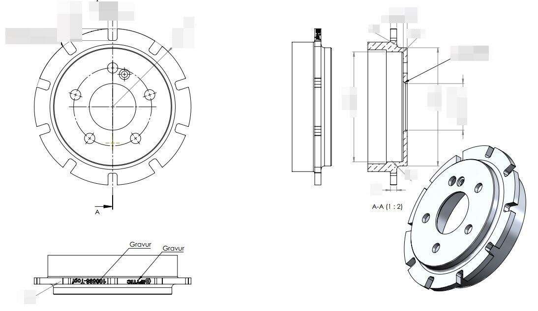 Zeichnung Tuning Adapter Hinterachse und Bremsscheibentopf: