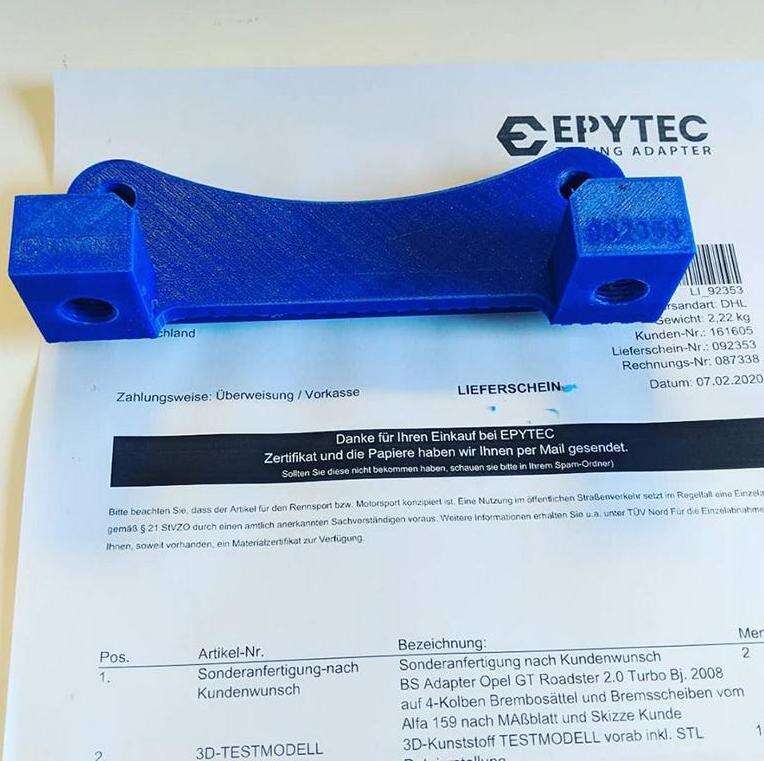 "Hallo liebe Leute von Epytec , das gelieferte Adaptermodell passt perfekt und es muss nichts geändert werden. Darum bitte ich, mir die beiden Adapter gemäß eurem Muster zu fertigen und zu schicken."