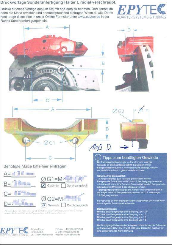 - ✓ Bremssattel Adapter Sonderanfertigung