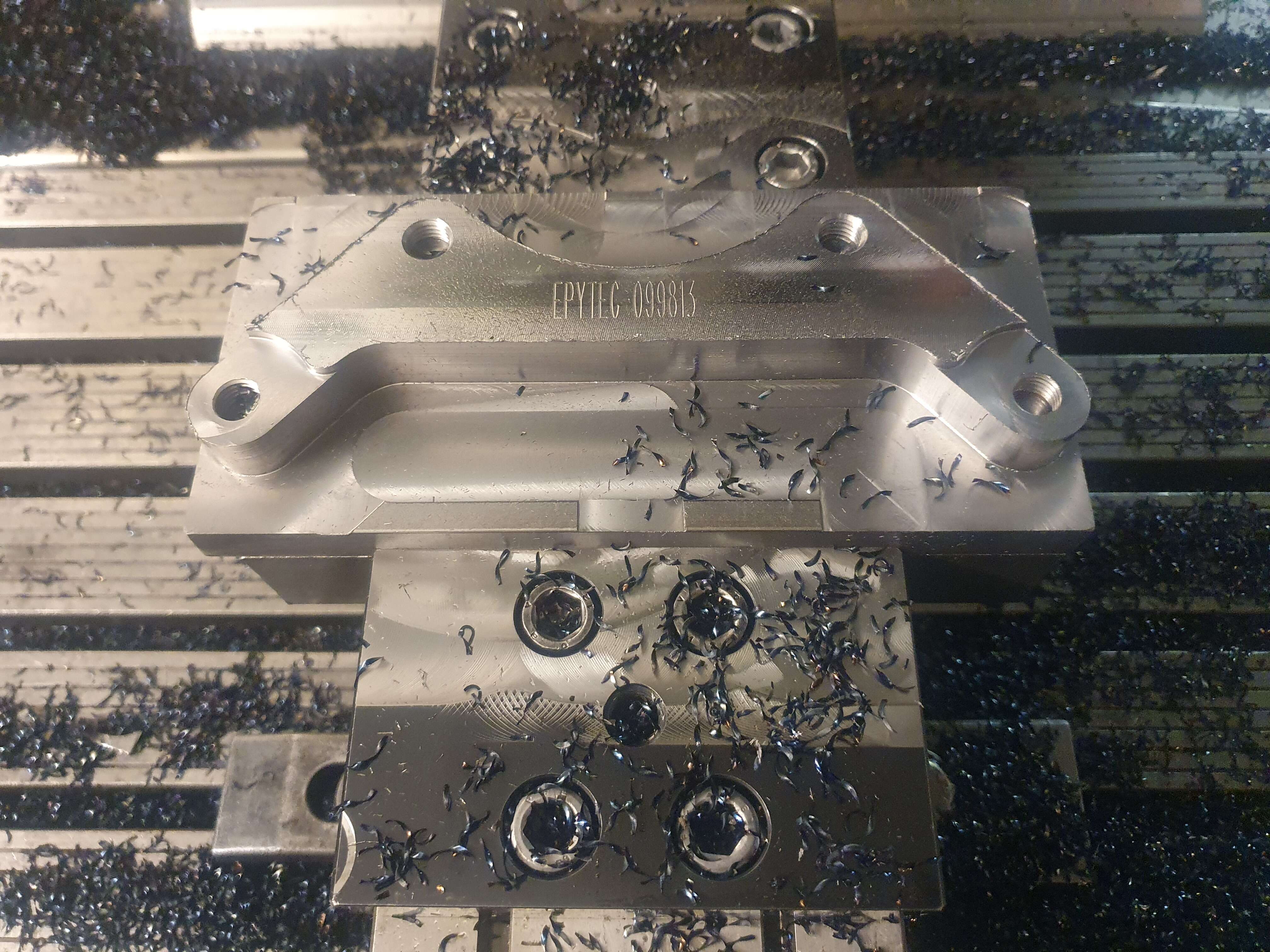 Nach Freigabe von Gert fräsen wir den Bremsen Tuning Adapter für den Smart Fortwo jetzt passgenau. Anschließend wird dieser zum Oberflächenveredler gefahren.