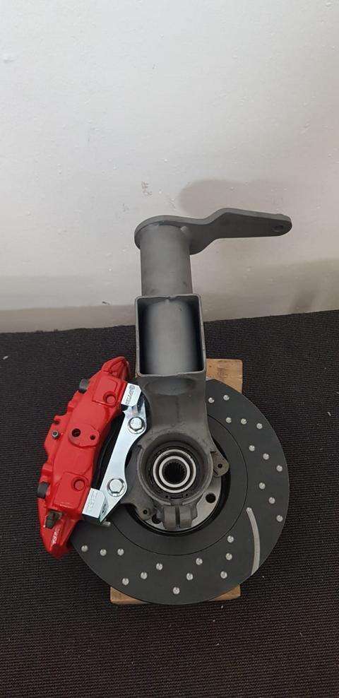 - Dazu hat uns Sven seine Komponenten geschickt, um folgende Bremsanlage an der Vorderachse zu adaptieren: