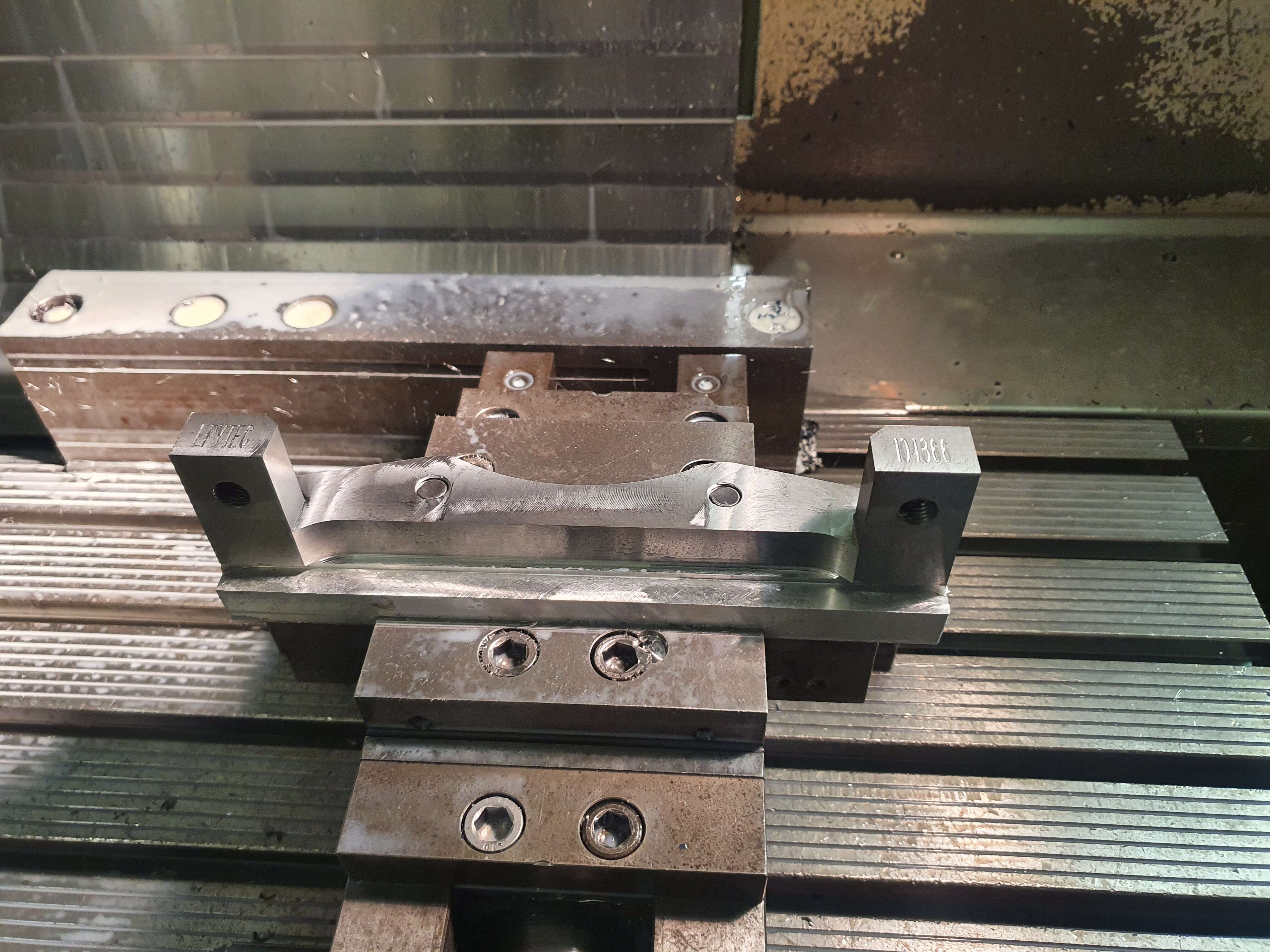 Nach Freigabe von Jonas fräsen wir den Tuning Adapter für den VW Golf 2 mit der Audi RS4 Bremsanlage jetzt passgenau. Anschließend wird dieser zum Oberflächenveredler gefahren.
