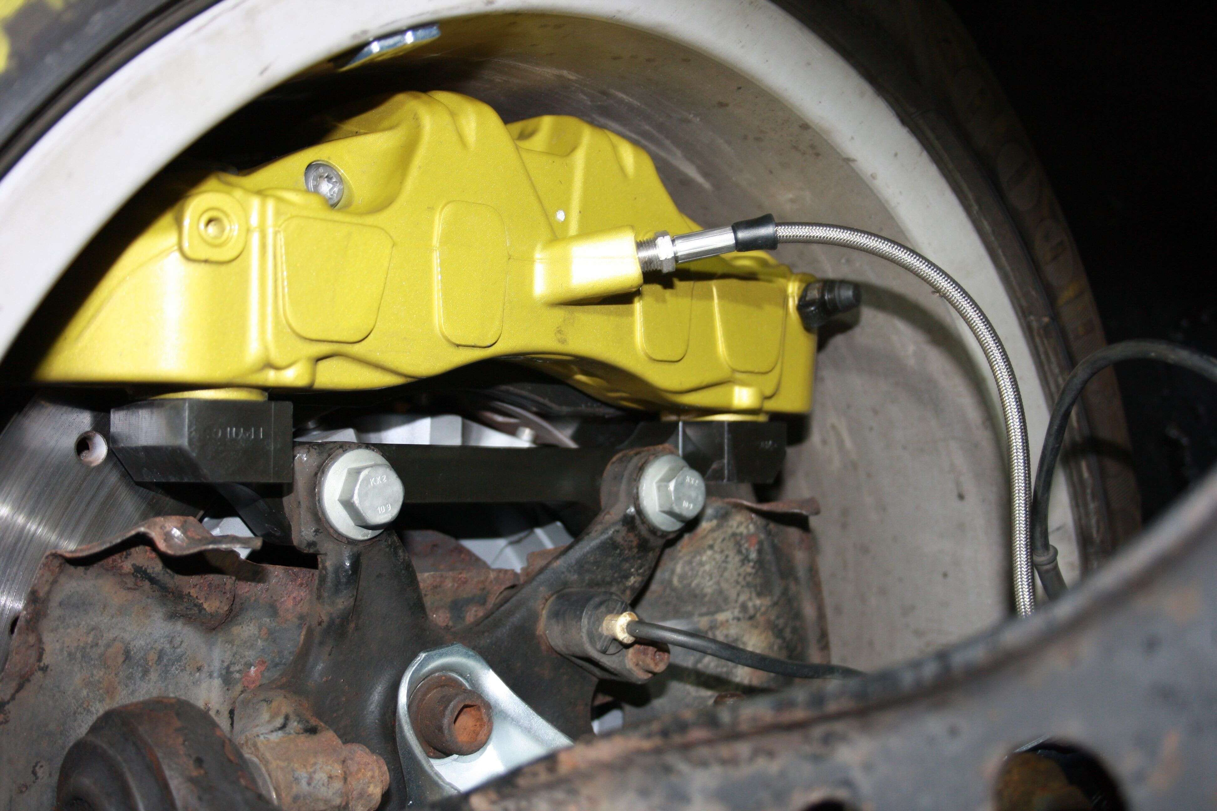 Bremssattel Adapter für die Vorderachse des BMW E36/Z3 um die BMW Performance 6-Kolben Bremssättel in Verbindung mit den 345x28mm E46 M3 Bremsscheiben zu fahren.