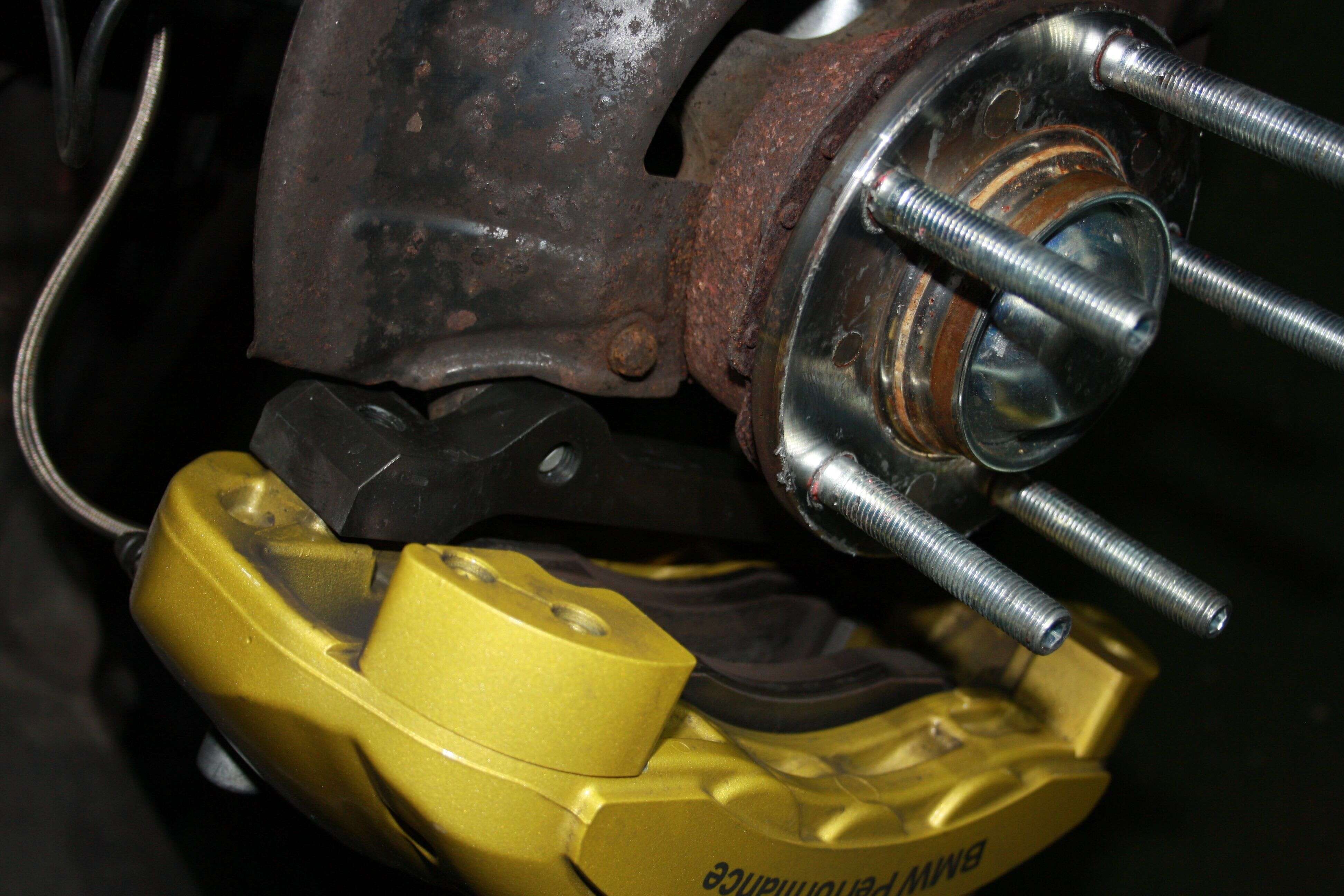 Die BMW Performance 6-Kolben Bremssättel werden einfach anstelle des original Sattels mithilfe unserer Adapter an die original Achsaufnahme geschraubt.