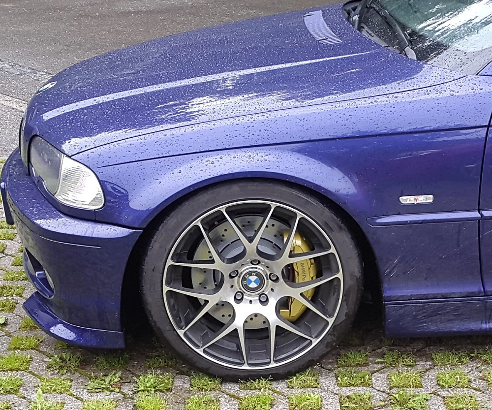 Bremssattel Adapter für die Vorderachse des BMW E46 Z4 und E85 um die BMW Performance 6-Kolben Bremssättel in Verbindung mit den 345x28mm E46 M3 CSL Bremsscheiben zu fahren.