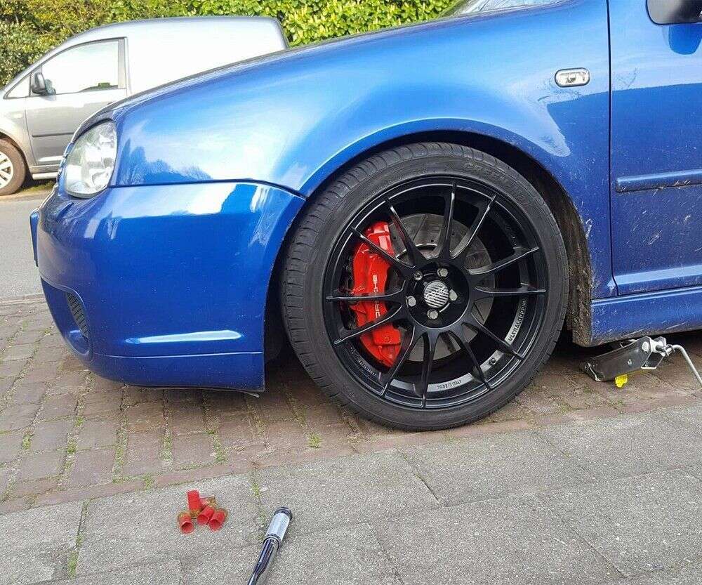 Ein weiterer Vorteil unseres Bremsanlagen Kits ist, dass es mit den gleichen originalen Bremssätteln und Bremsscheiben ausgestattet ist, die auch in Serienfahrzeugen verbaut sind. Diese OE-Teile machen nicht nur den Austausch der Bremsen einfach und unkompliziert, sondern erleichtern auch die Eintragung beim TÜV.