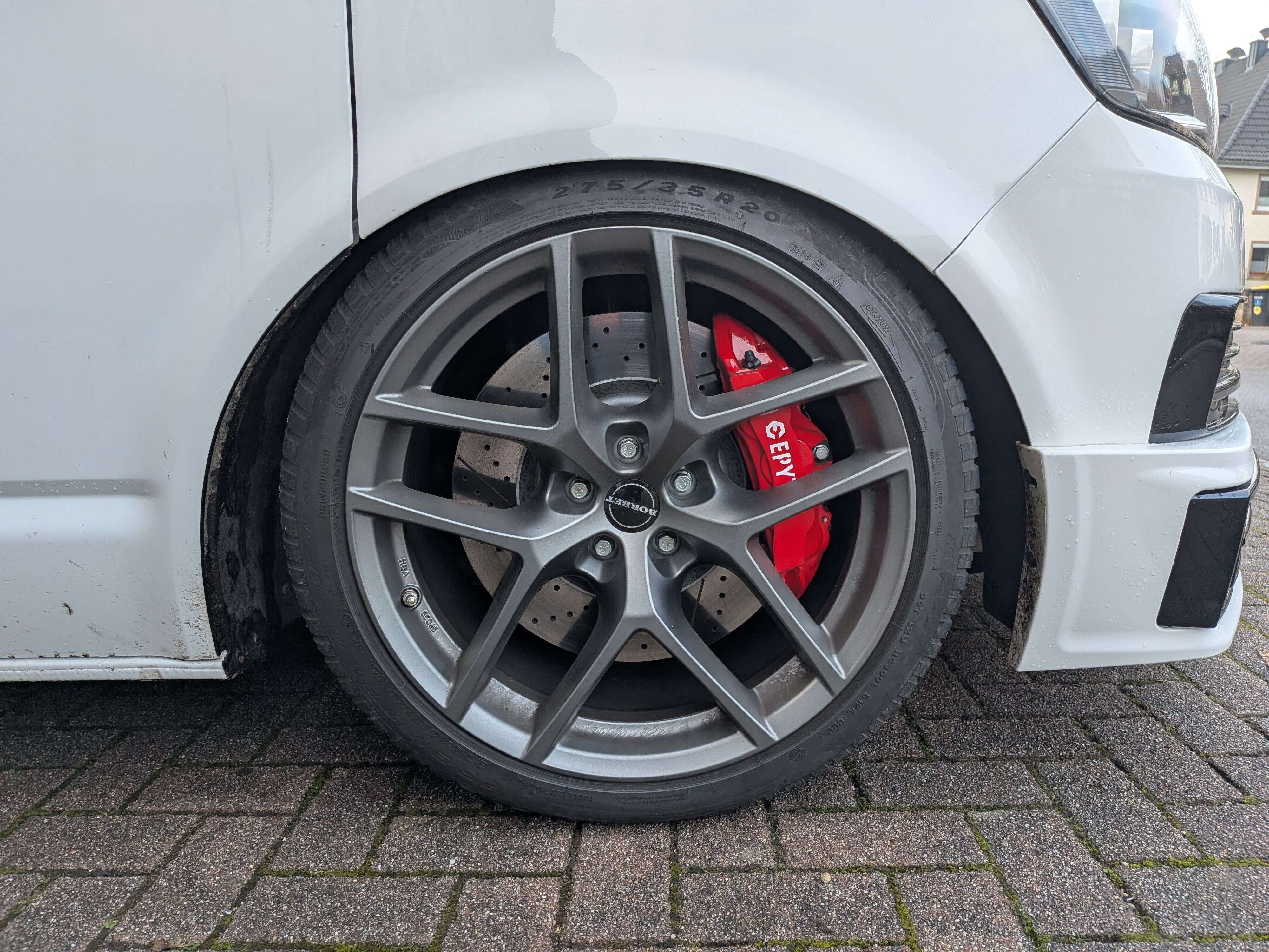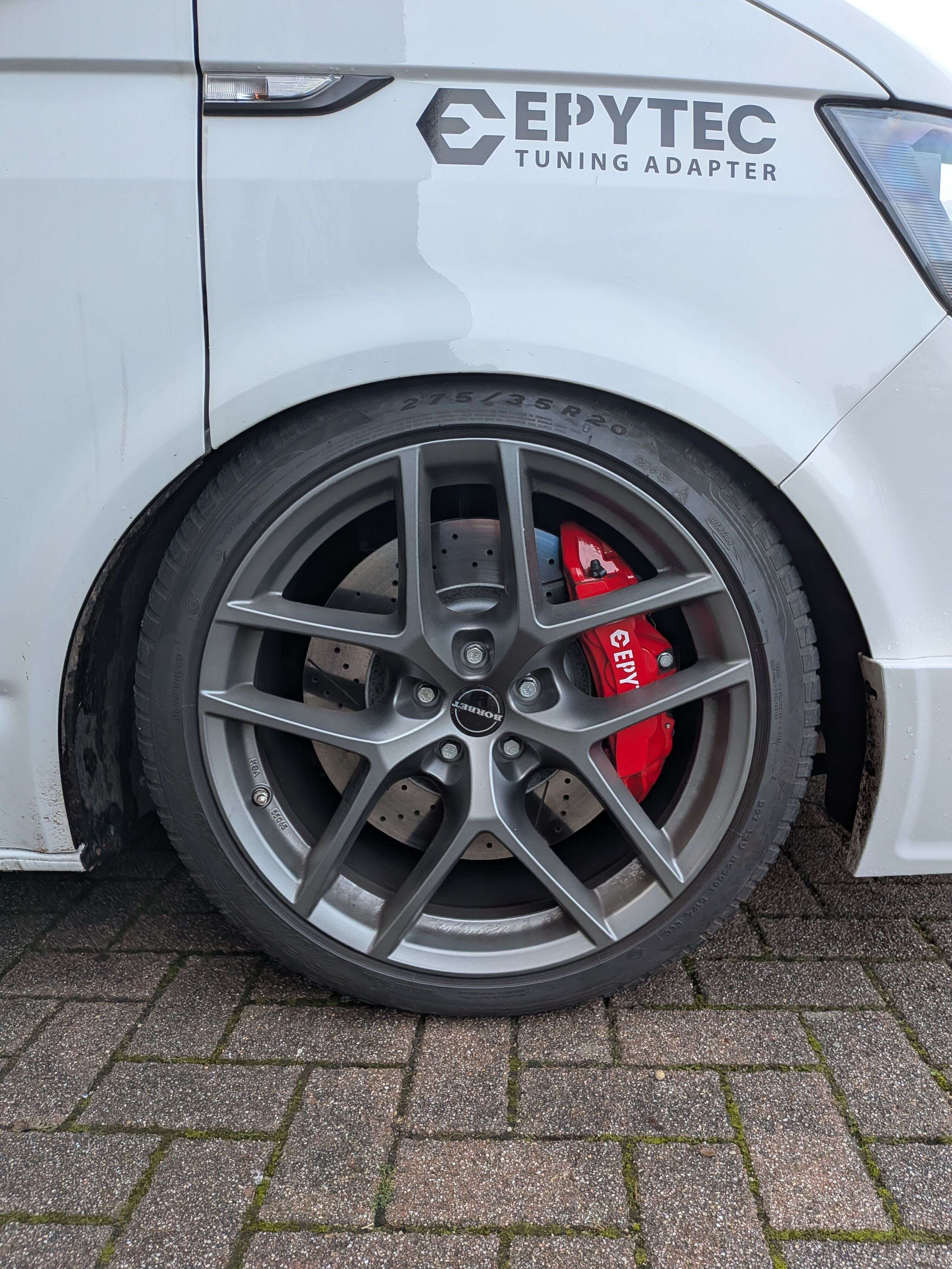 Mit unserem Hochleistungs-Bremsanlagen-Kit für die VW T5 T6 Bus Baureihe und viele weitere Fahrzeuge, kannst du deine Vorderachse auf eine 6-Kolben Bremsanlage umrüsten und eine ideale Performance erzielen.