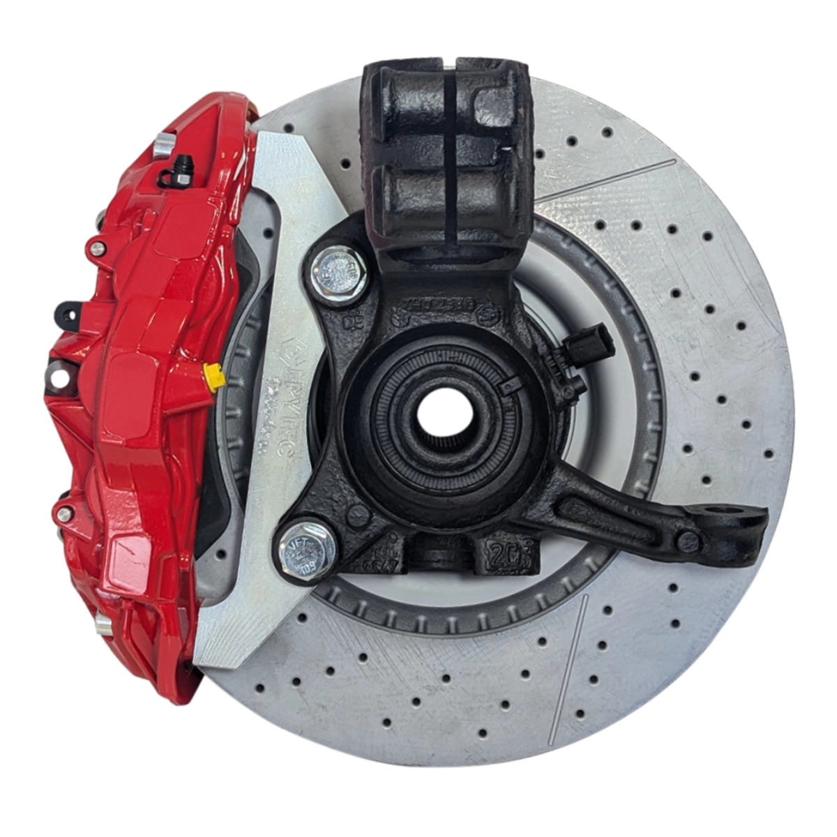 Mit diesem Hochleistung Bremsen-Kit kannst du direkt loslegen und hast alles, was du brauchst, um deine Vorderachse auf eine 6-Kolben Bremsanlage umzurüsten.