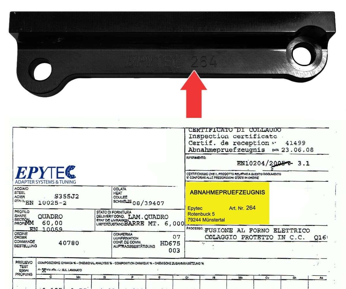 - Durch das im Lieferumfang enthaltene Material Zertifikat kann eine Eintragung per Einzelabnahme auch bei Serienfahrzeugen ermöglicht werden