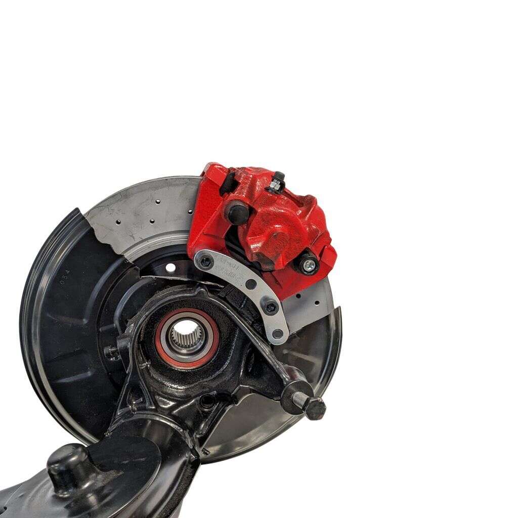 Bremssatteladapter für die Hinterachse des BMW E36 Compact zur Montage der BMW E46 Bremsanlage mit Bremsscheiben 320x20 mm in Verbindung mit dem BMW E46 Bremssattel.