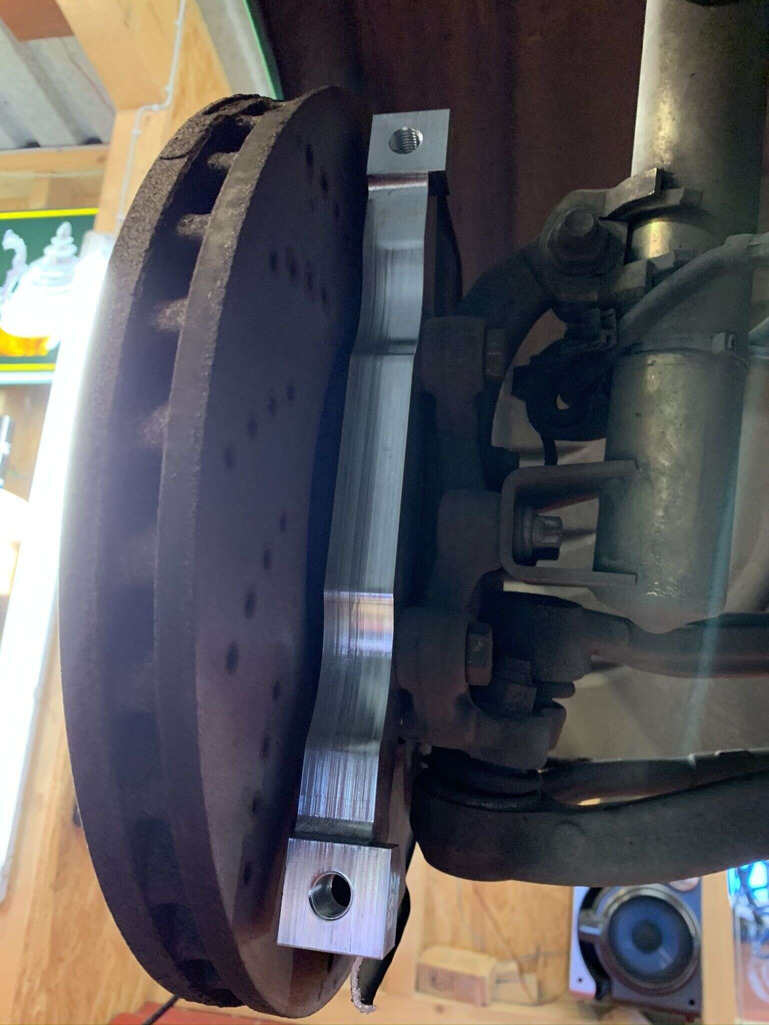 Bremssattel Adapter für die Vorderachse des Mercedes Benz C-Klasse C350 W204 um die Mercedes Benz C63 W204 AMG Bremsscheibe 360x36 in Verbindung mit den Mercedes Benz 6-Kolben Bremssättel zu fahren.