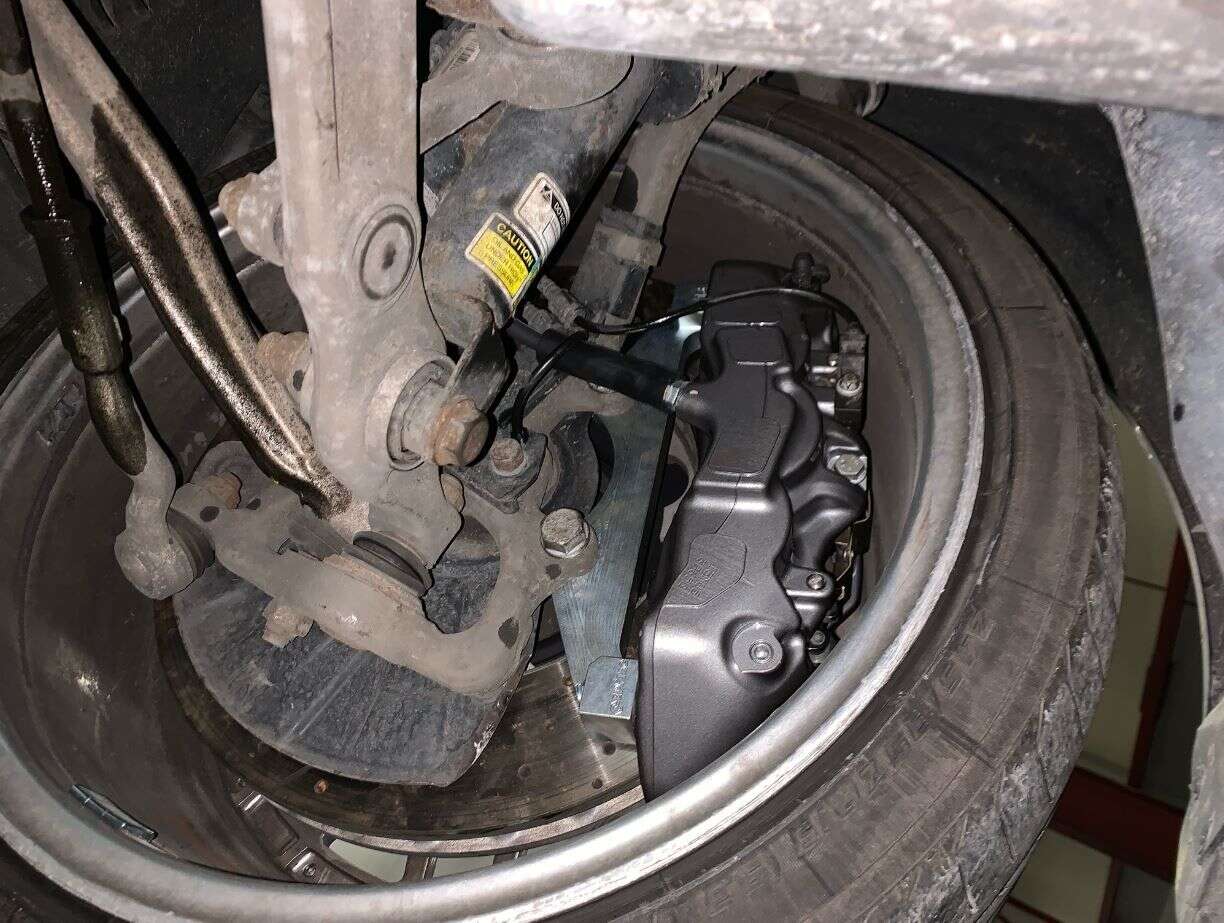 Bremssattel Adapter für die Vorderachse des Mercedes Benz E55 AMG, E63 W211, C219, CLS 55 AMG, CLS 63 AMG, SL 63, 55 R230, um die Mercedes Benz GLS AMG Bremsanlage 390x36 mit 6 Kolben Bremssattel zu fahren.