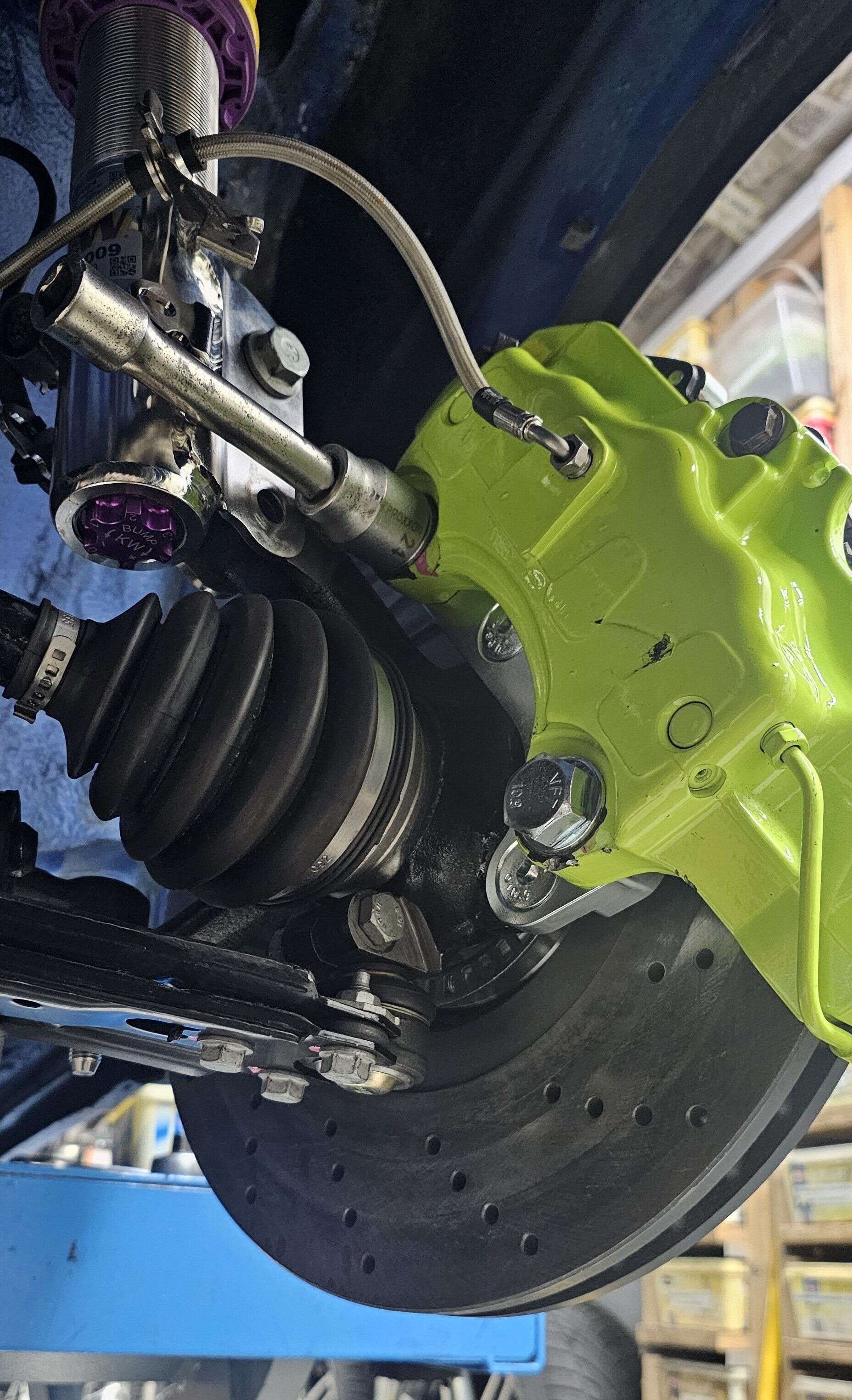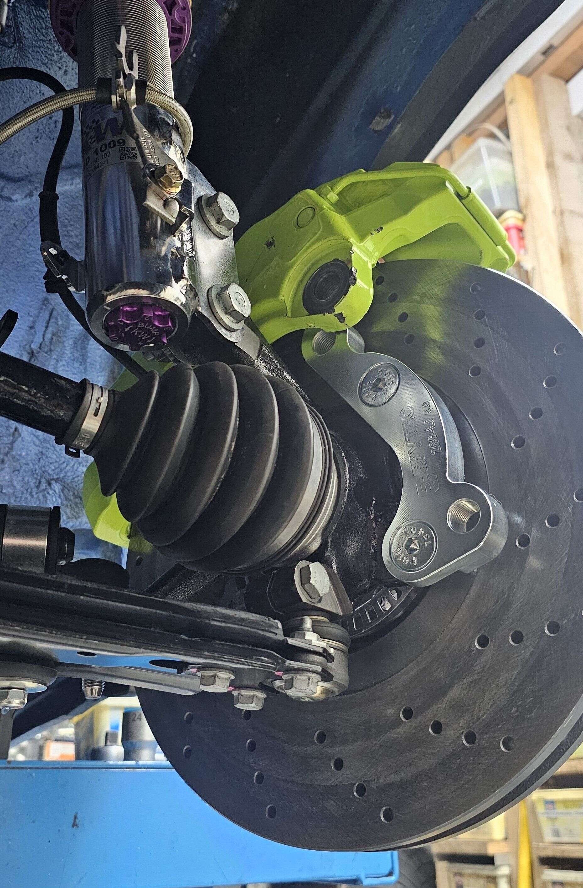 Bremssatteladapter für die Golf 2, 3 Baureihe ( schmale Achse ) um die Golf 4 R32 Bremsscheibe 334x32mm in Verbindung mit den Brembo/Porsche Cayenne ZR 17 Bremssätteln fahren zu können.