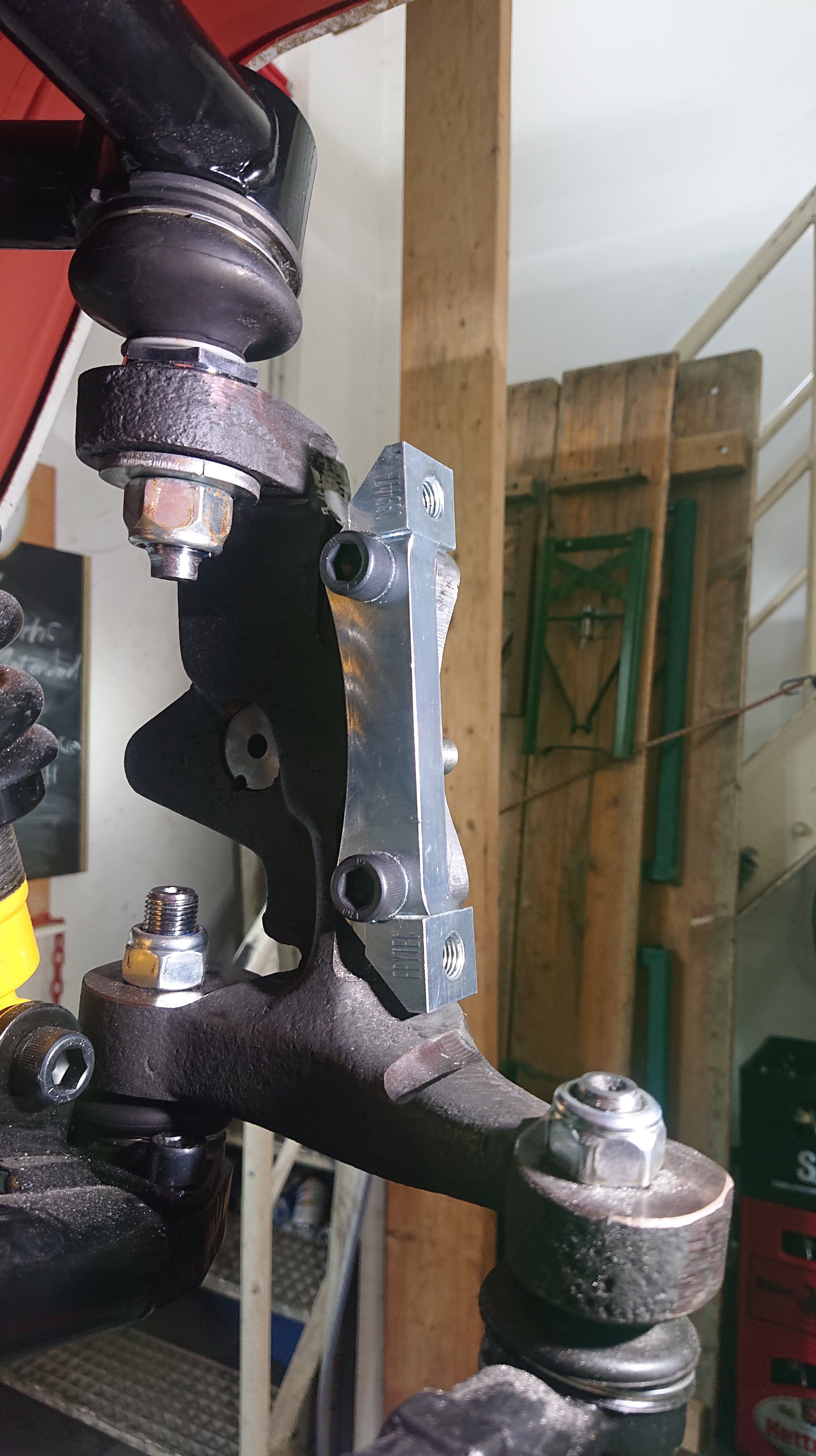 Bremssattel Adapter um den VW T2B Bus auf der Red9design Vorderachse, auf innenbelüftete Porsche 911 282x24mm Bremsscheiben in Verbindung mit den Porsche Boxter Sätteln umzubauen.