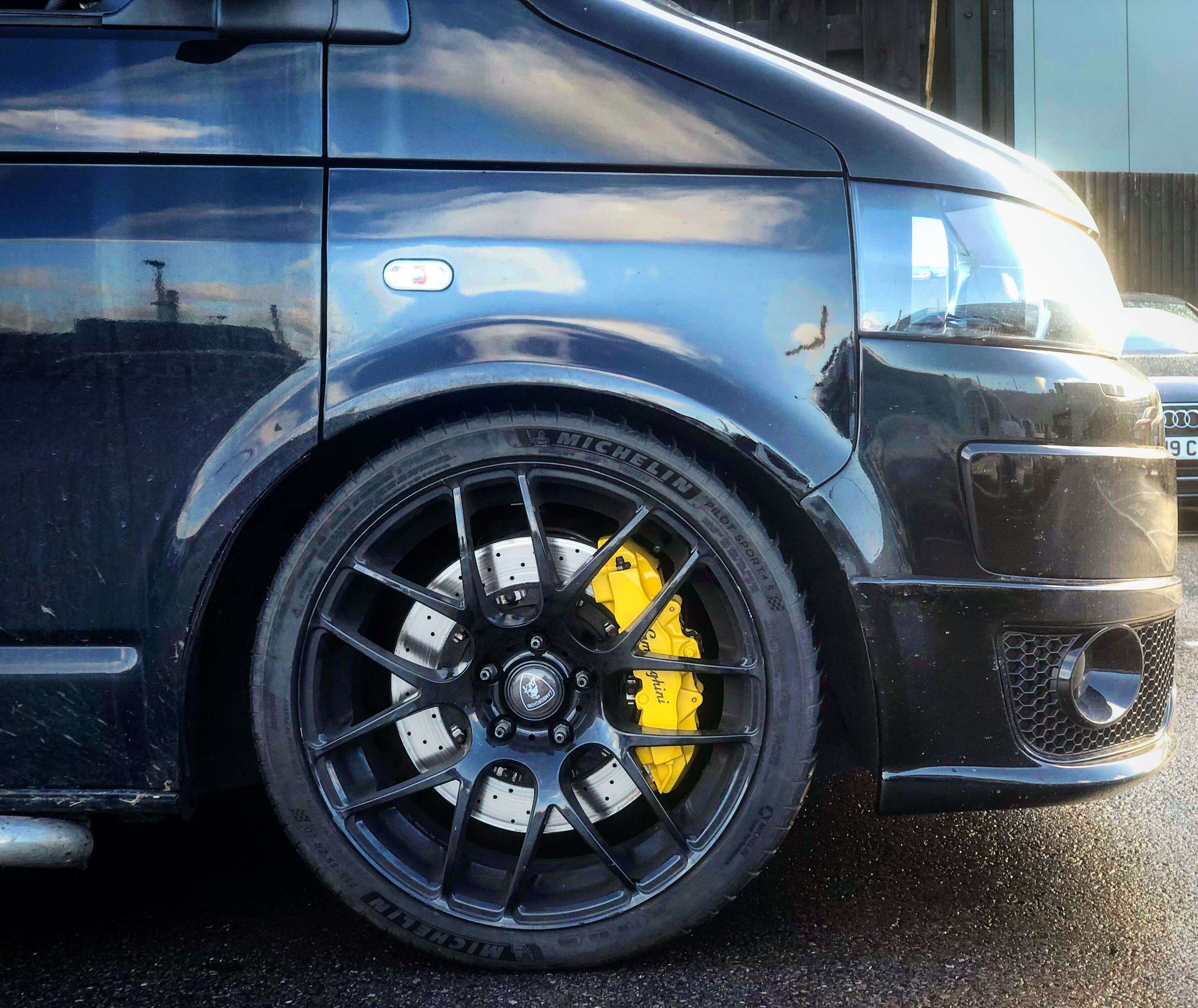 Bremssattel Adapter für den VW T5 BUS auf die RS4 B7 8 Kolben Brembo-Bremssättel in Verbindung mit den Bremsscheiben 365x34 vom Audi RS4 B7.