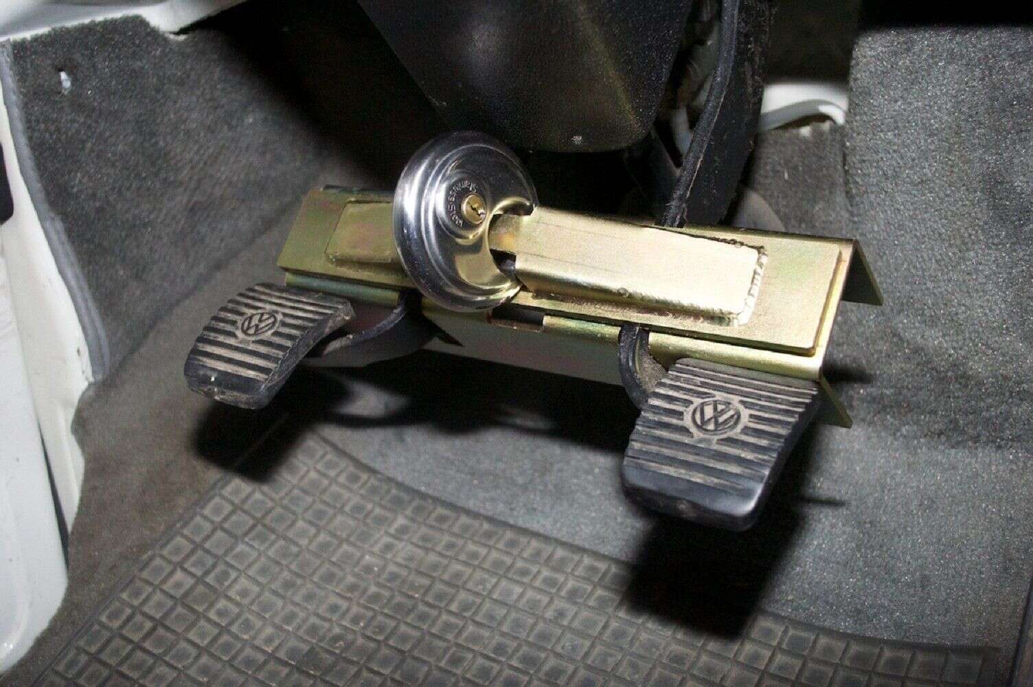 Anti-theft protection system for pedals on T2 T3 bus, also Doka Pritsche Bulli, 2WD or Syncro. For all models with manual transmission.