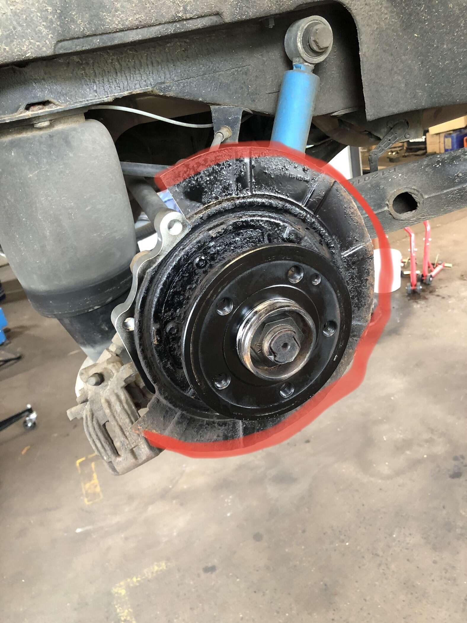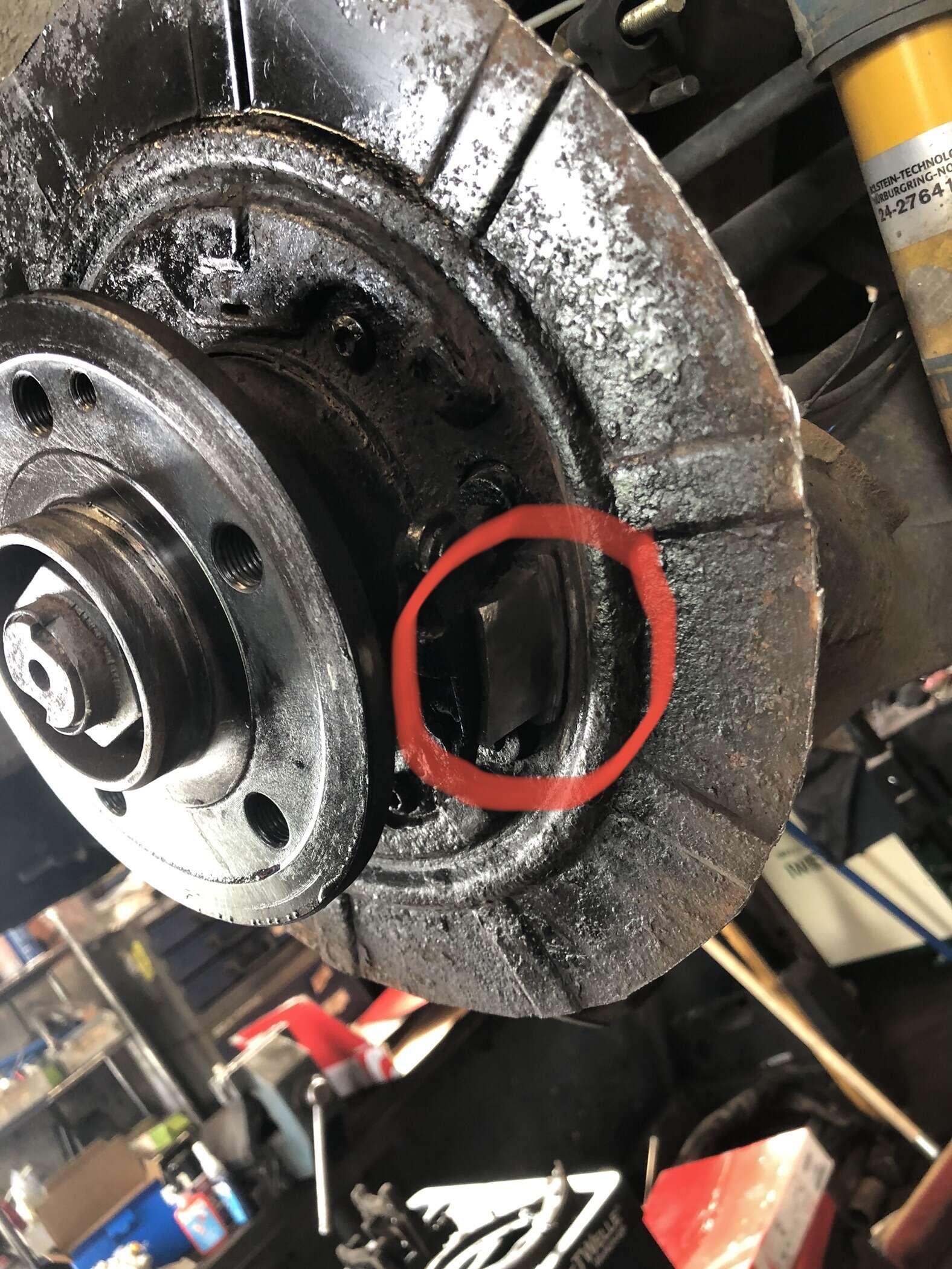 In order for the brake disc to be installed correctly, in addition to turning the brake disc, the brake pad stop must also be adjusted. As marked in the picture, this step is necessary to ensure that there is sufficient clearance for the brake disc and that the entire braking system functions smoothly.