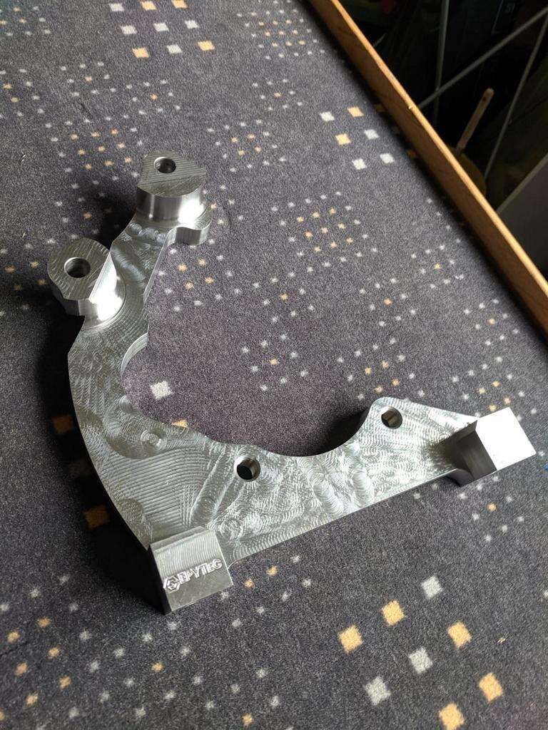 Once the prototyping was complete and the adapters fitted the Brembo GTR Brembo 6-piston caliper (20A09202) with the GTR brake disc (103.9502E), we were able to pass the order on to manufacturing and start milling the tuning adapters.