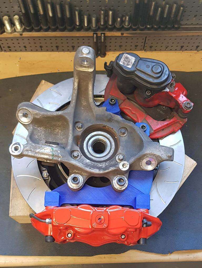 Brake conversion of the Mercedes MB S63 AMG front and rear axle to the 6-piston Brembo system Tuning Adapter